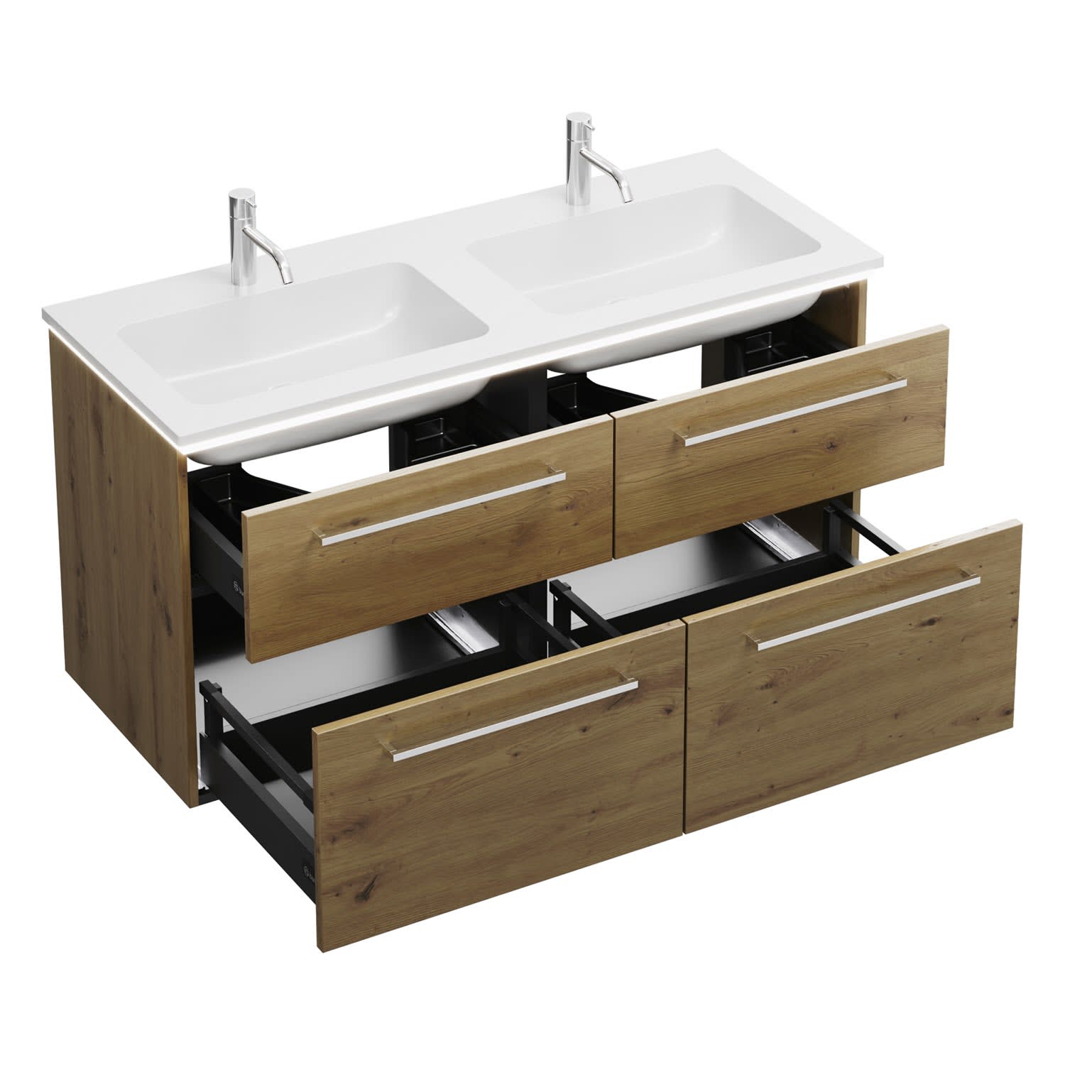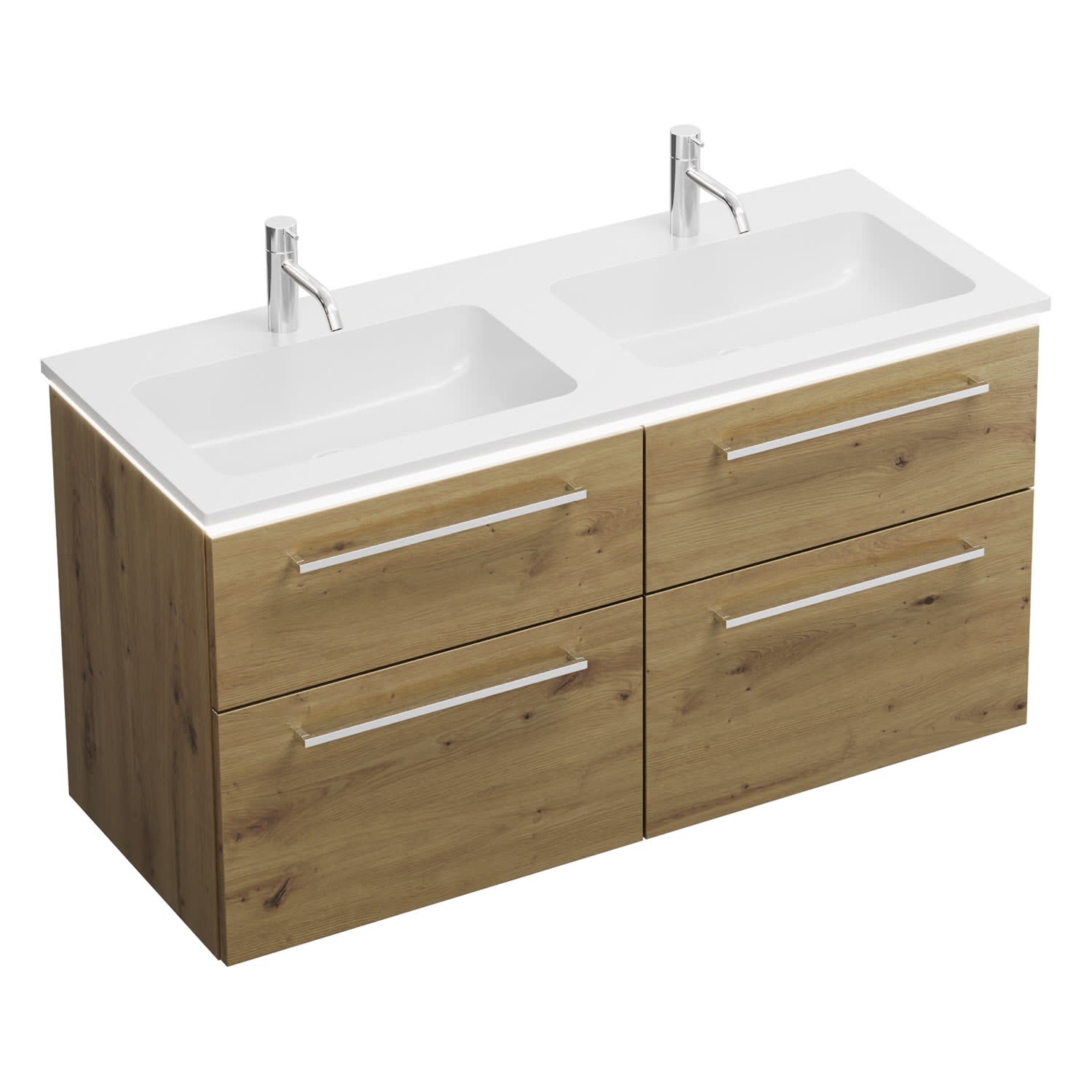 burgbad Eqio Waschtischkombination mit Mineralguss-Doppelwaschtisch und LED-Beleuchtung, 122 cm, mit Stangengriff P95