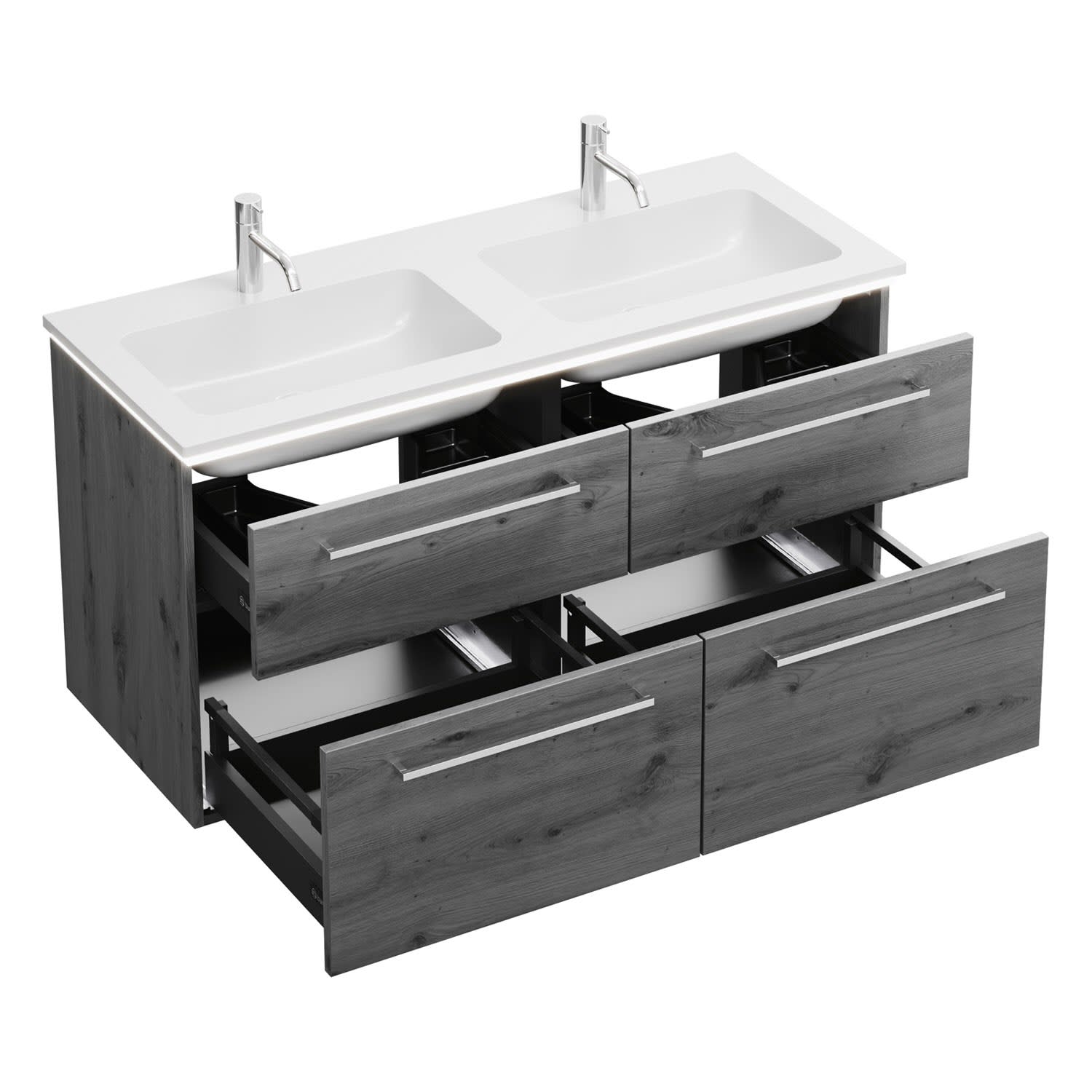 burgbad Eqio Waschtischkombination mit Mineralguss-Doppelwaschtisch und LED-Beleuchtung, 122 cm, mit Stangengriff P95