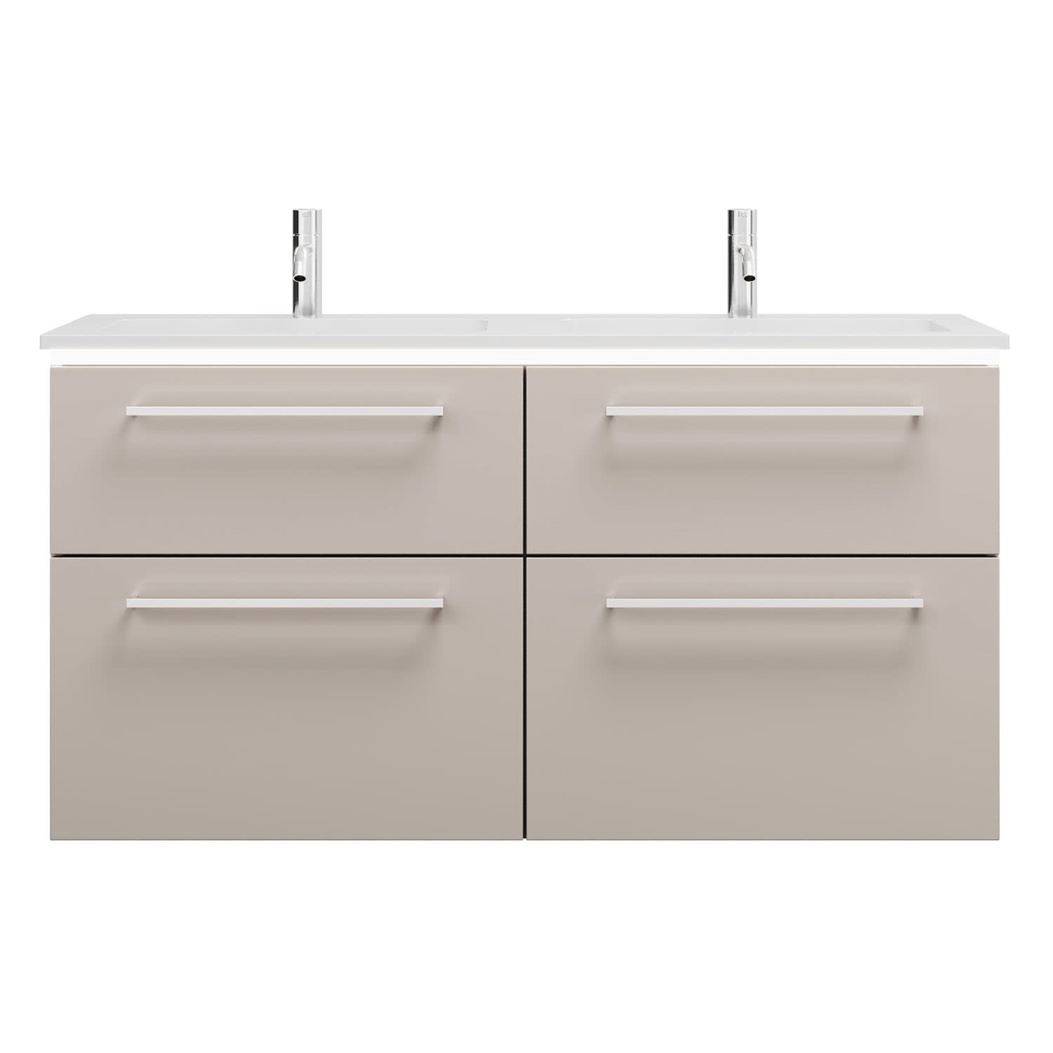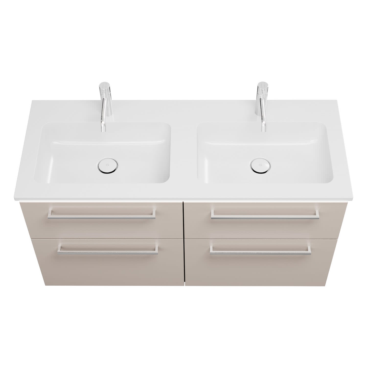 burgbad Eqio Waschtischkombination mit Mineralguss-Doppelwaschtisch und LED-Beleuchtung, 122 cm, mit Stangengriff P95