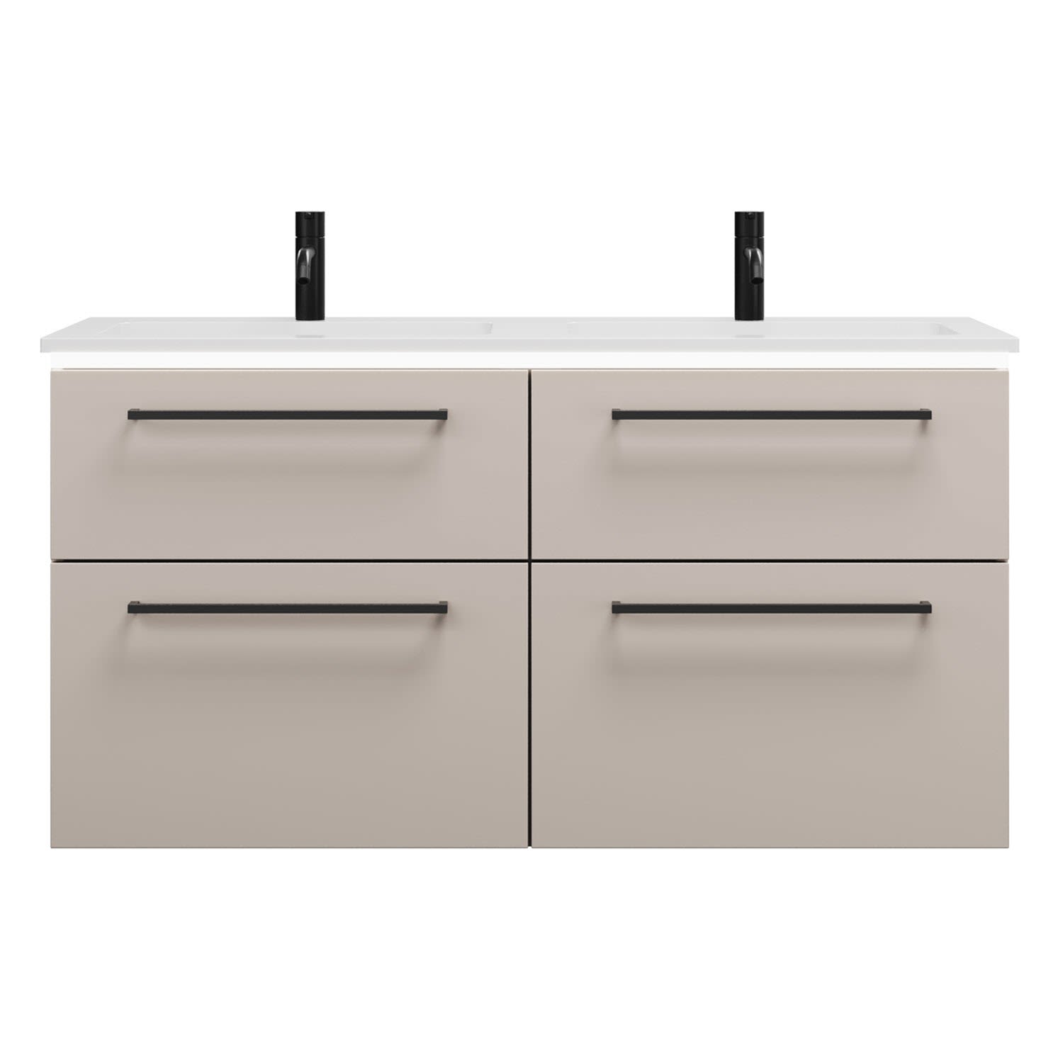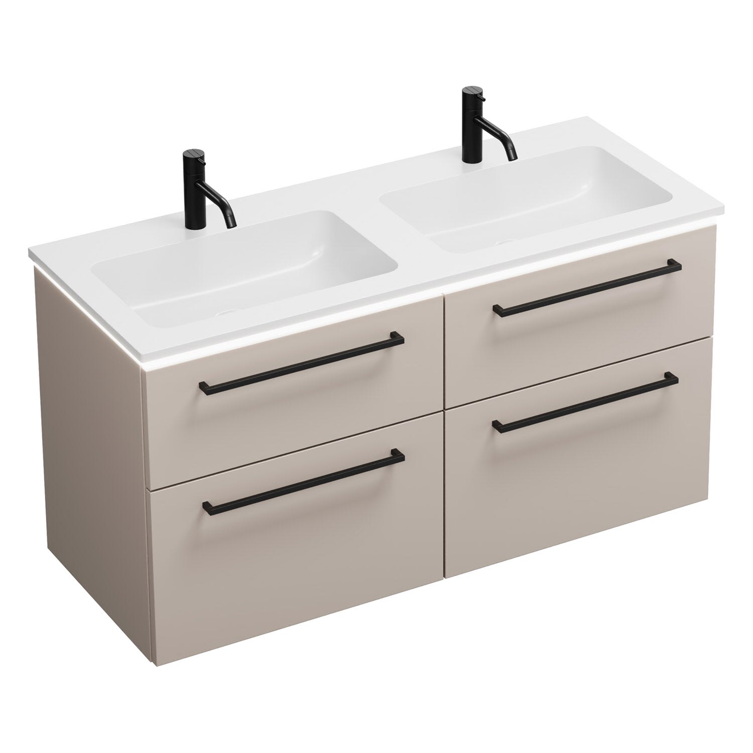 burgbad Eqio Waschtischkombination mit Mineralguss-Doppelwaschtisch und LED-Beleuchtung, 122 cm, mit Stangengriff G0234