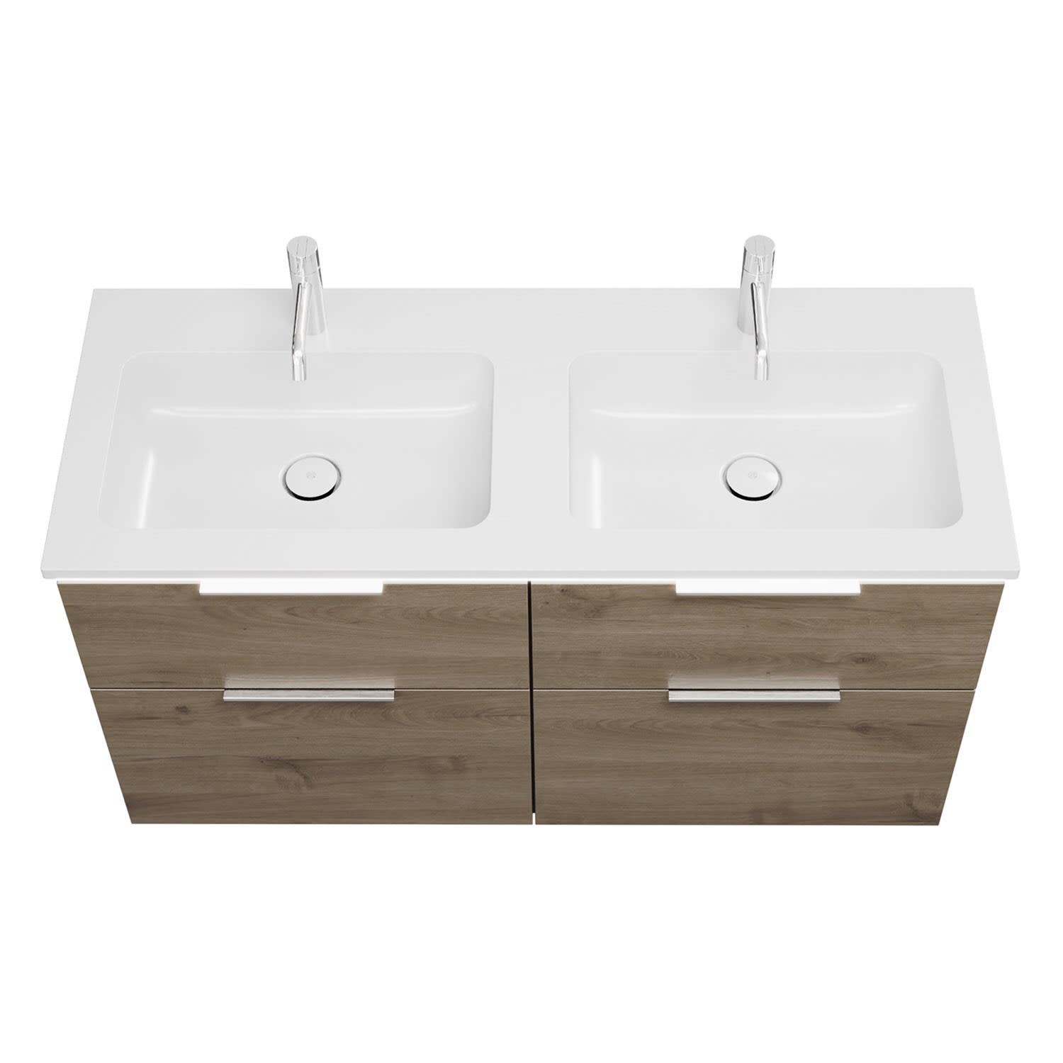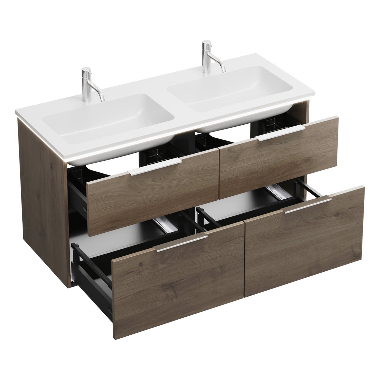 burgbad Eqio Waschtischkombination mit Mineralguss-Doppelwaschtisch und LED-Beleuchtung, 122 cm, mit Griff G0146