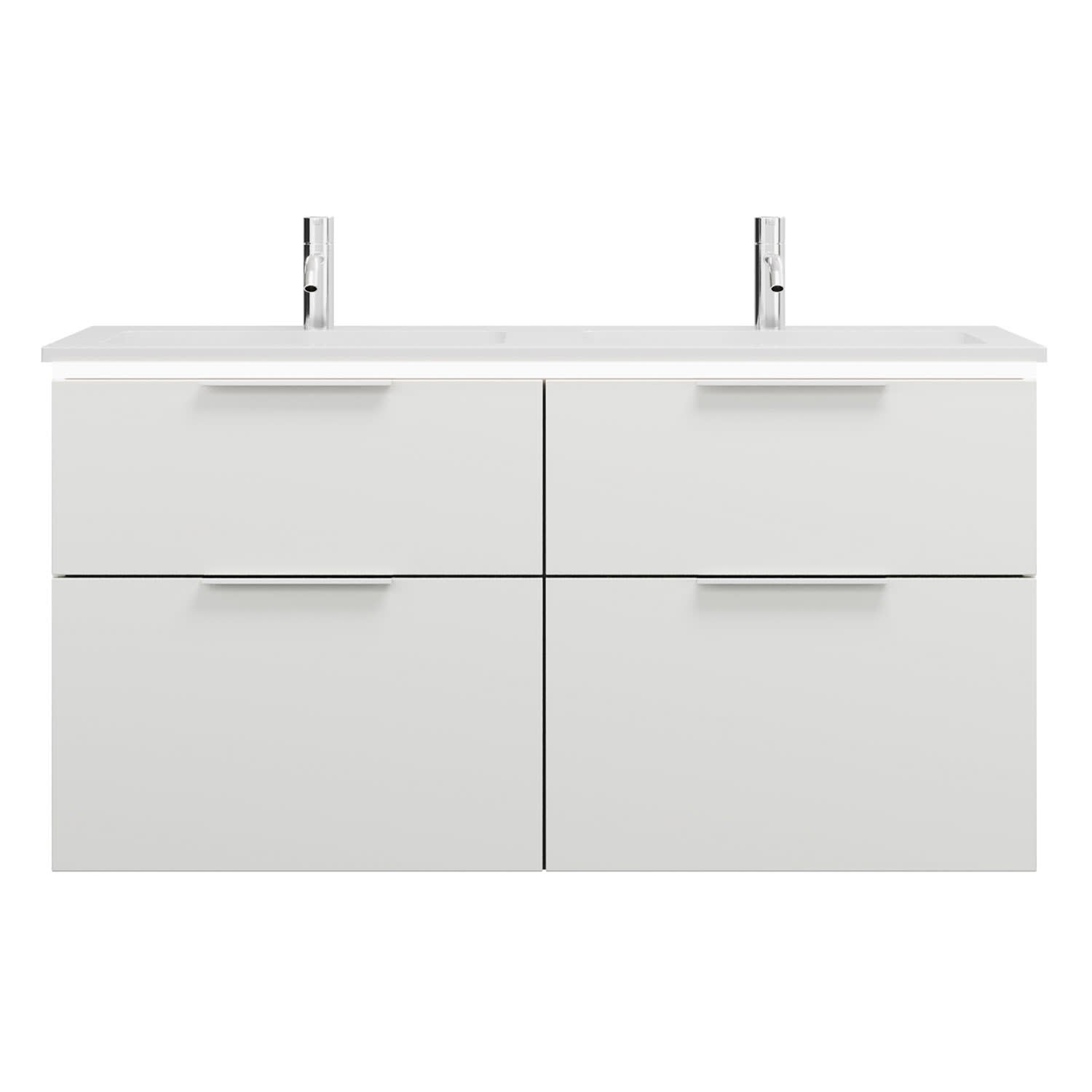 burgbad Eqio Waschtischkombination mit Mineralguss-Doppelwaschtisch und LED-Beleuchtung, 122 cm, mit Griff G0146