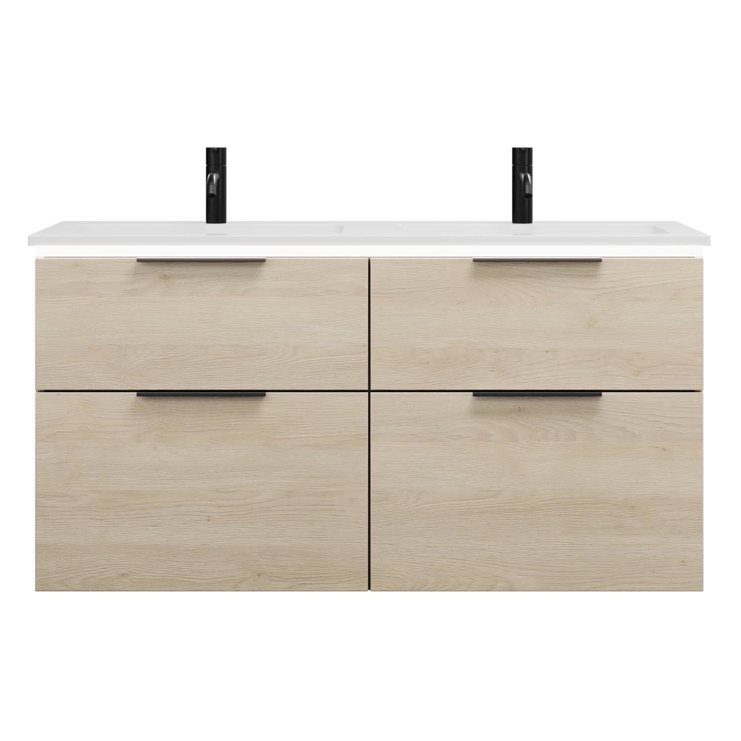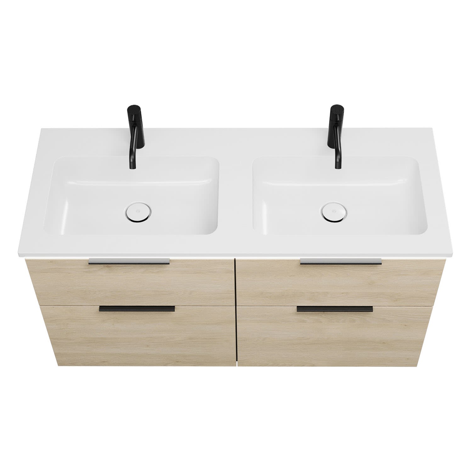 burgbad Eqio Waschtischkombination mit Mineralguss-Doppelwaschtisch und LED-Beleuchtung, 122 cm, mit Griff G0200