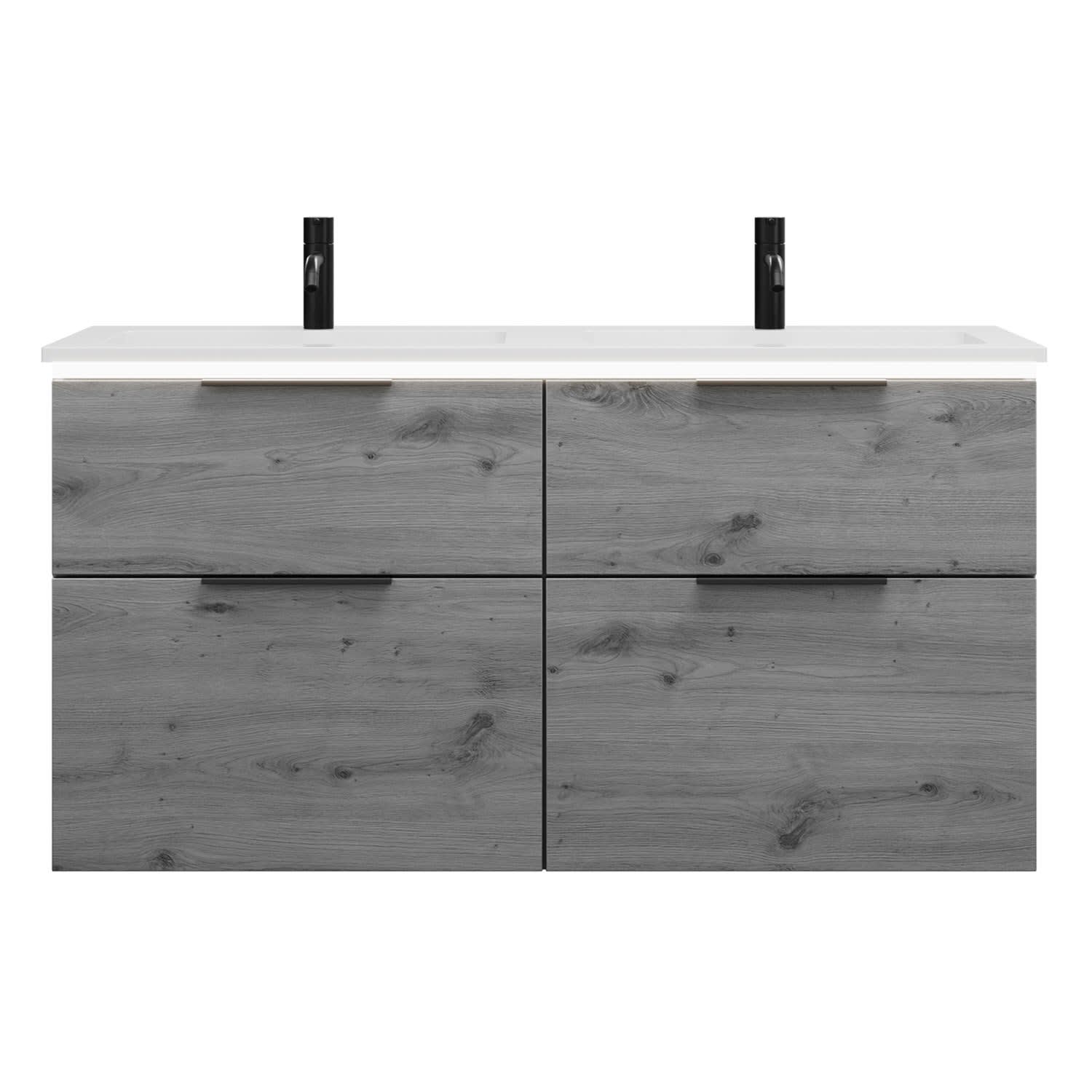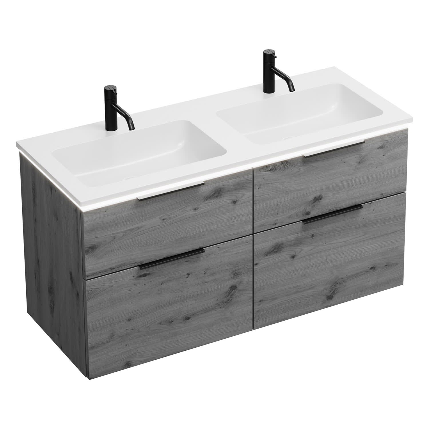 burgbad Eqio Waschtischkombination mit Mineralguss-Doppelwaschtisch und LED-Beleuchtung, 122 cm, mit Griff G0200