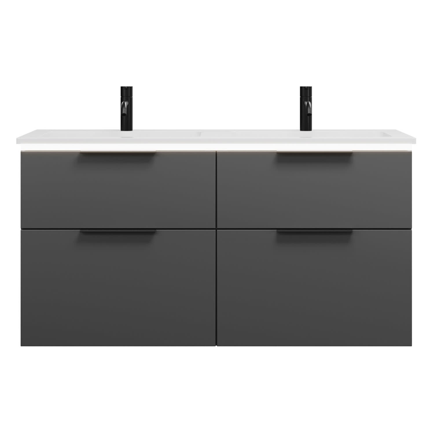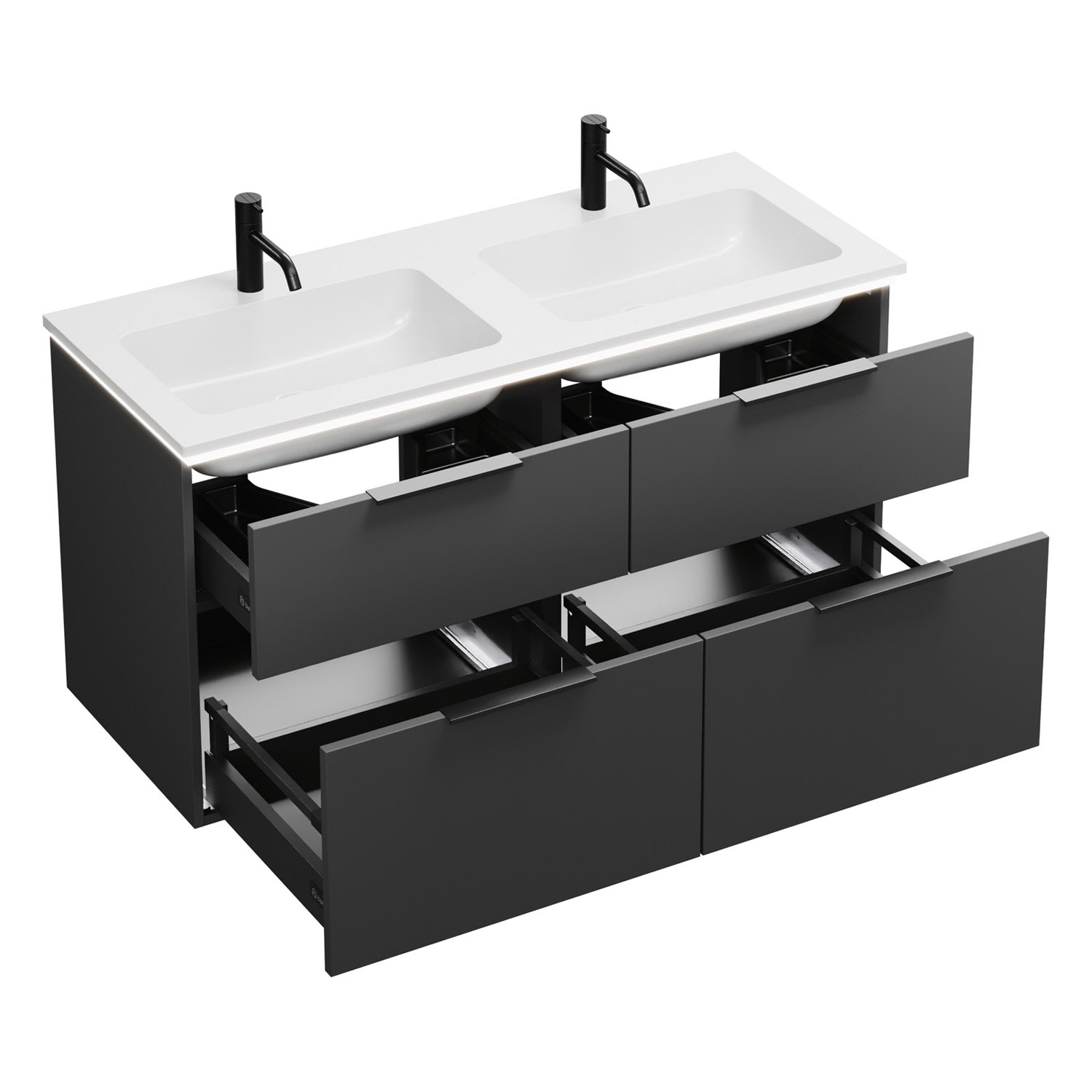 burgbad Eqio Waschtischkombination mit Mineralguss-Doppelwaschtisch und LED-Beleuchtung, 122 cm, mit Griff G0200