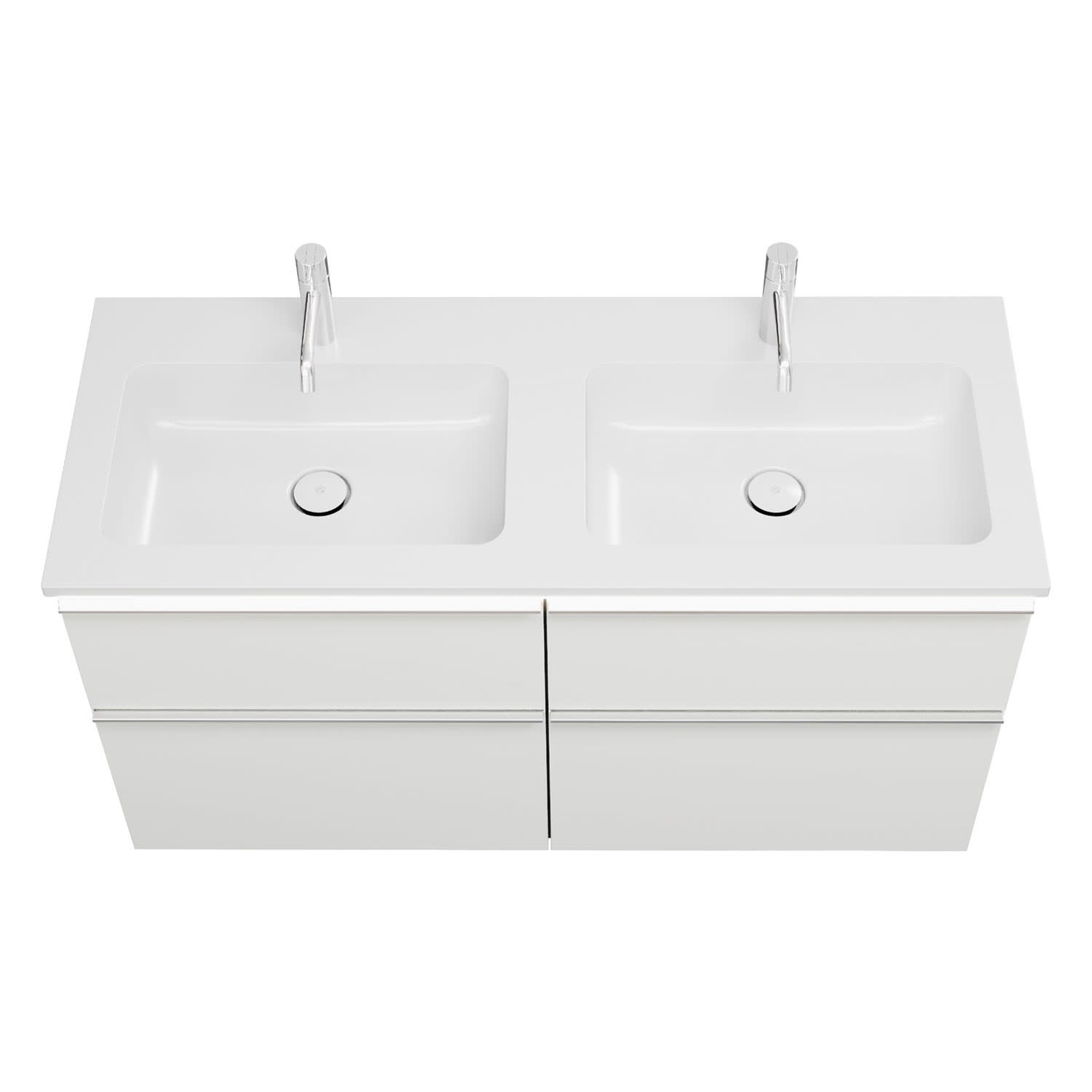 burgbad Eqio Waschtischkombination mit Mineralguss-Doppelwaschtisch und LED-Beleuchtung, 122 cm, mit Griffleiste G0251