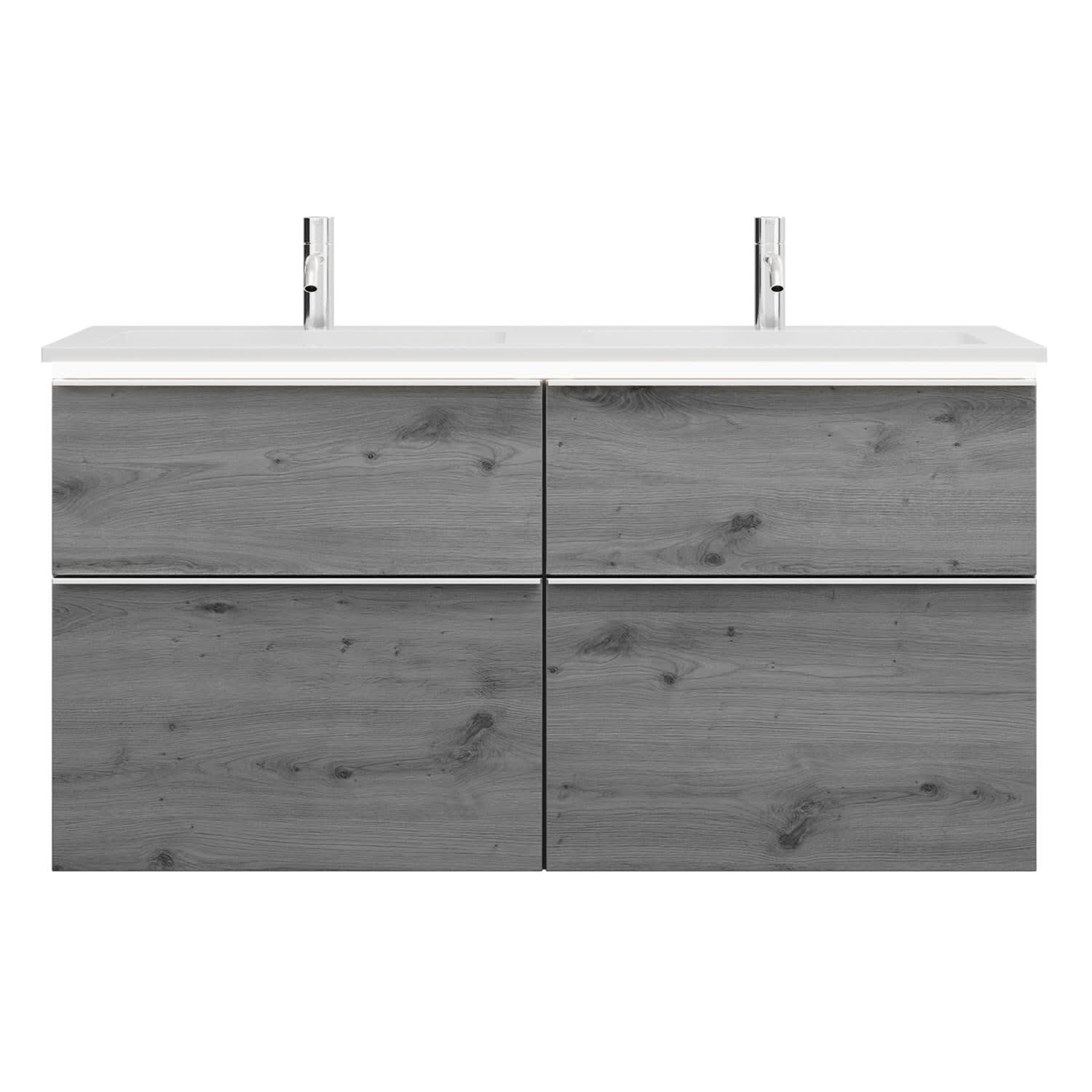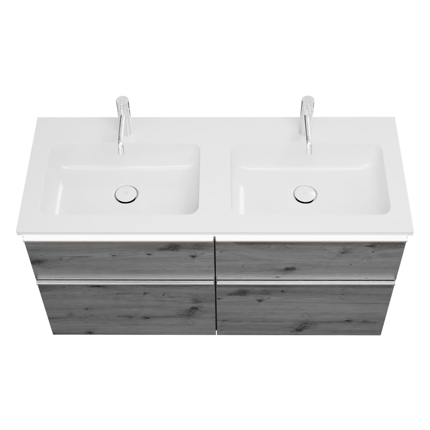 burgbad Eqio Waschtischkombination mit Mineralguss-Doppelwaschtisch und LED-Beleuchtung, 122 cm, mit Griffleiste G0251