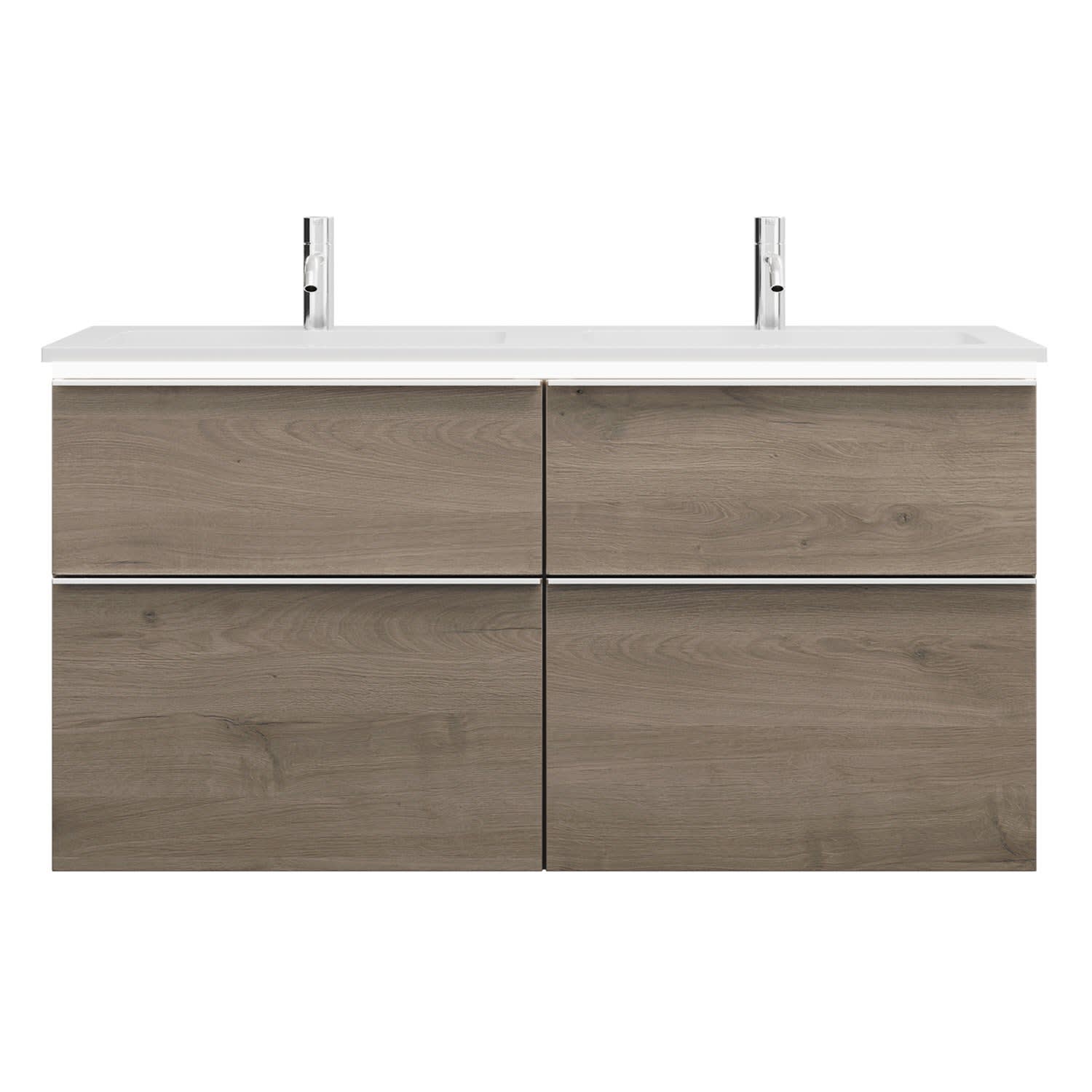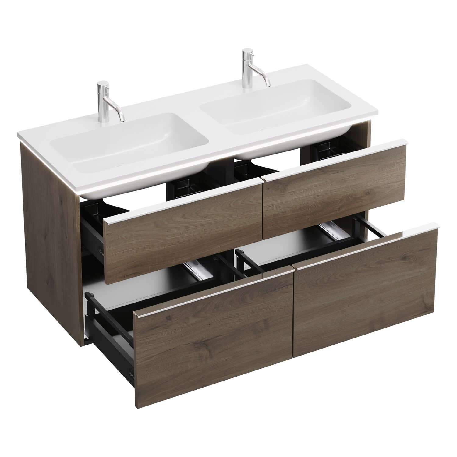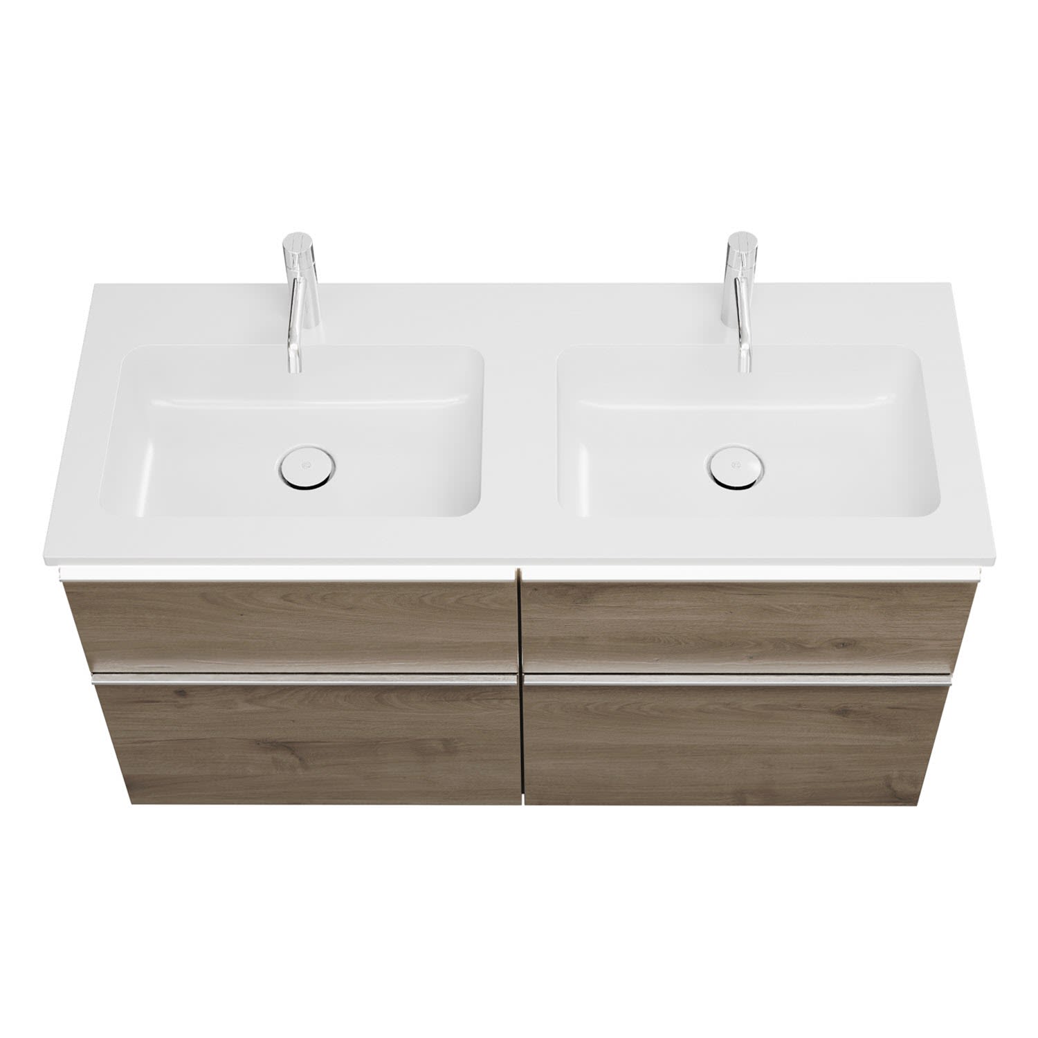 burgbad Eqio Waschtischkombination mit Mineralguss-Doppelwaschtisch und LED-Beleuchtung, 122 cm, mit Griffleiste G0251