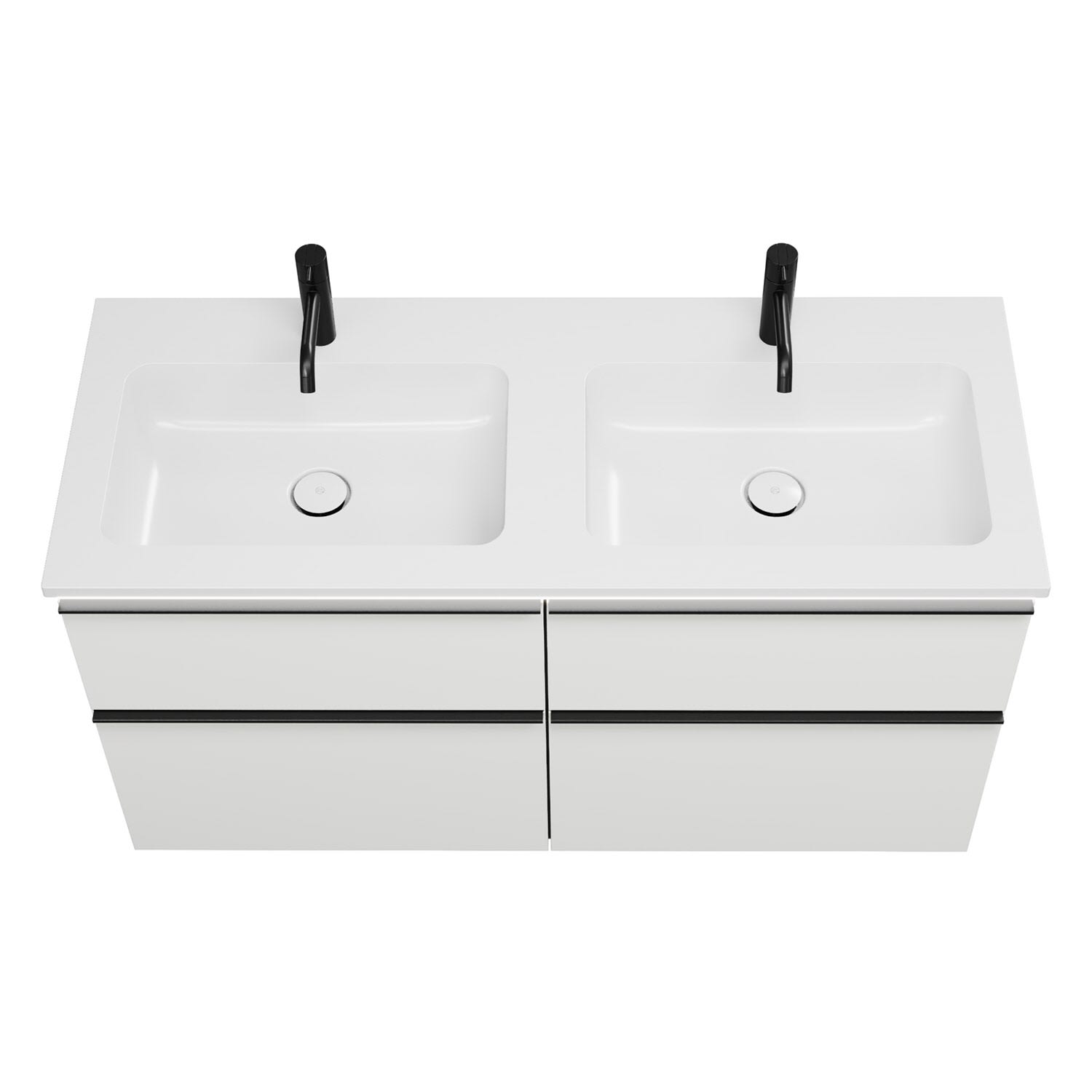 burgbad Eqio Waschtischkombination mit Mineralguss-Doppelwaschtisch und LED-Beleuchtung, 122 cm, mit Griffleiste G0252
