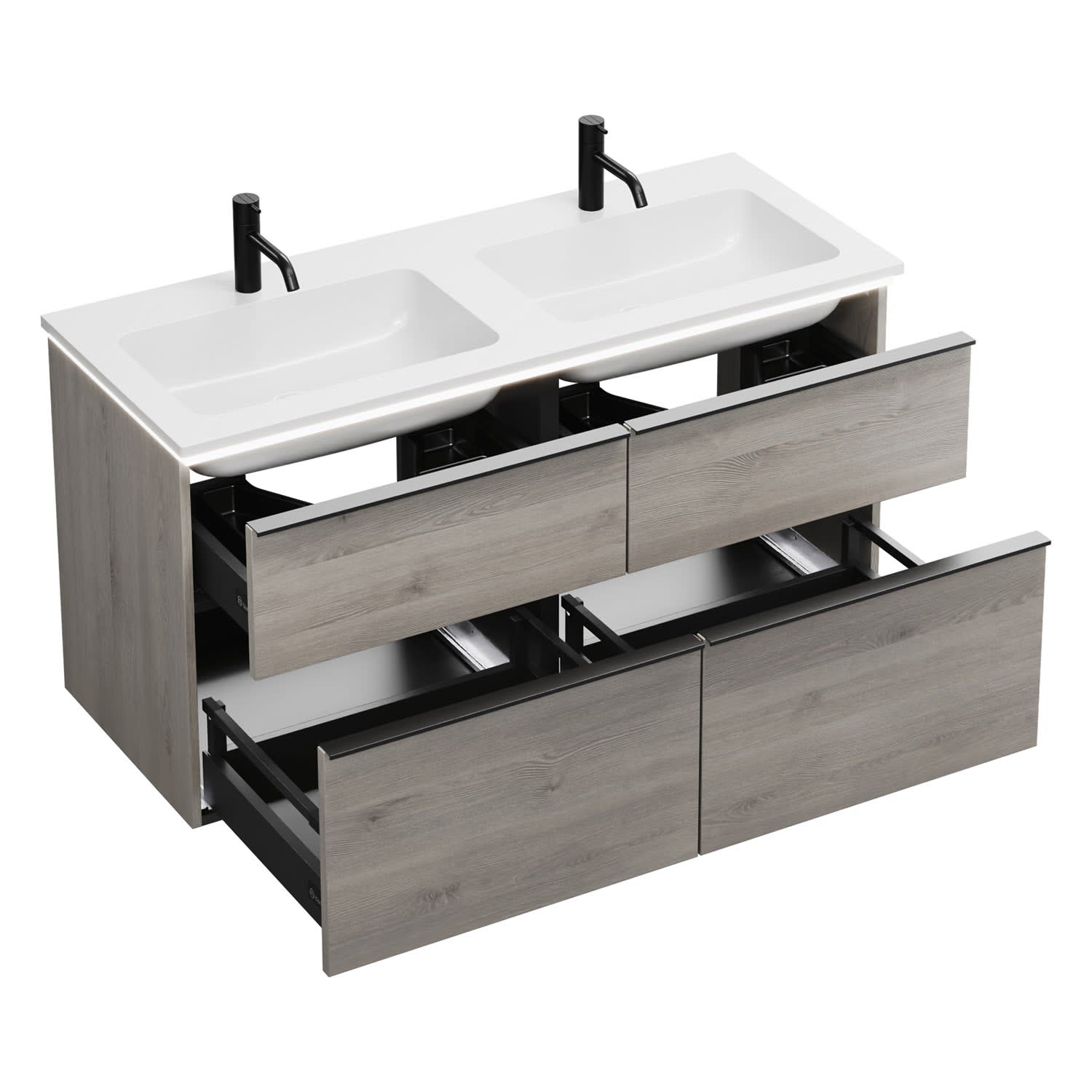 burgbad Eqio Waschtischkombination mit Mineralguss-Doppelwaschtisch und LED-Beleuchtung, 122 cm, mit Griffleiste G0252