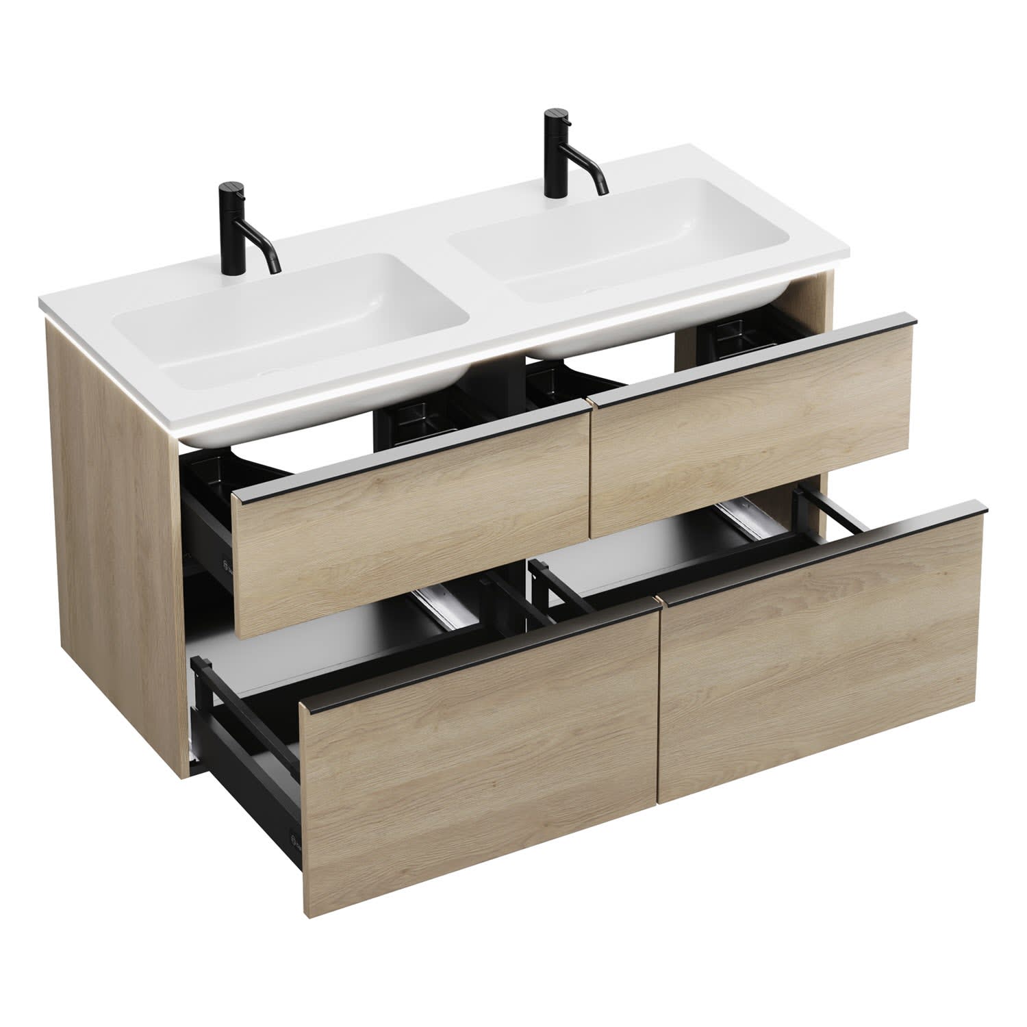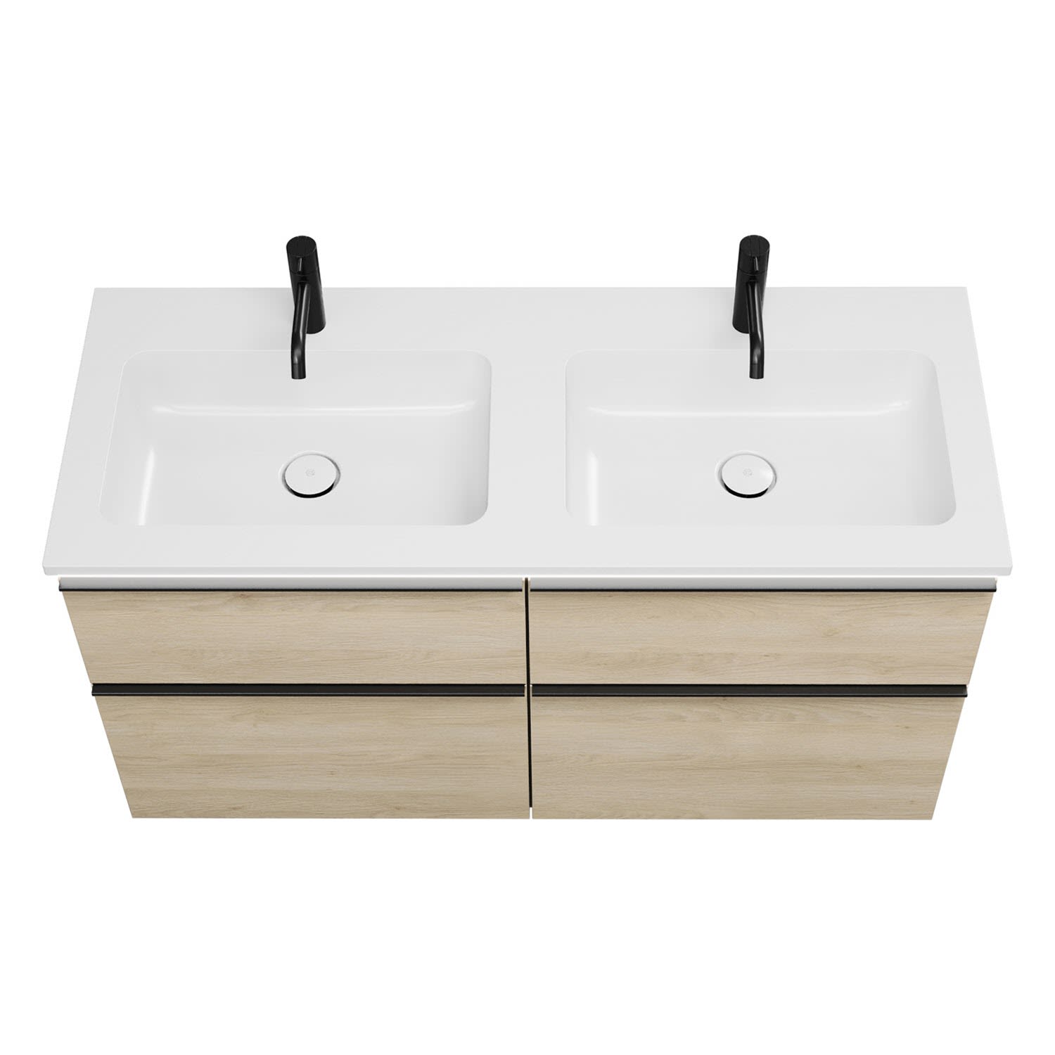 burgbad Eqio Waschtischkombination mit Mineralguss-Doppelwaschtisch und LED-Beleuchtung, 122 cm, mit Griffleiste G0252