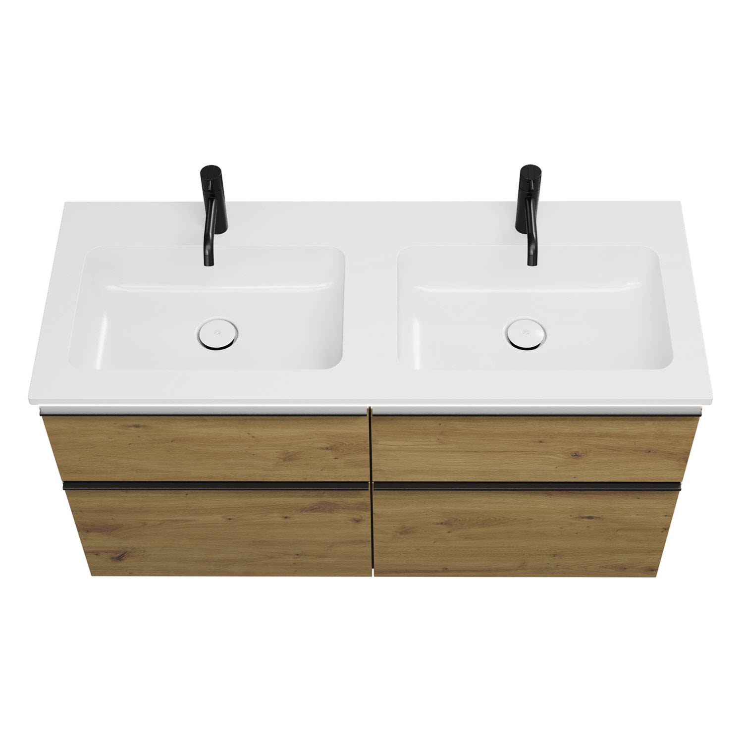 burgbad Eqio Waschtischkombination mit Mineralguss-Doppelwaschtisch und LED-Beleuchtung, 122 cm, mit Griffleiste G0252