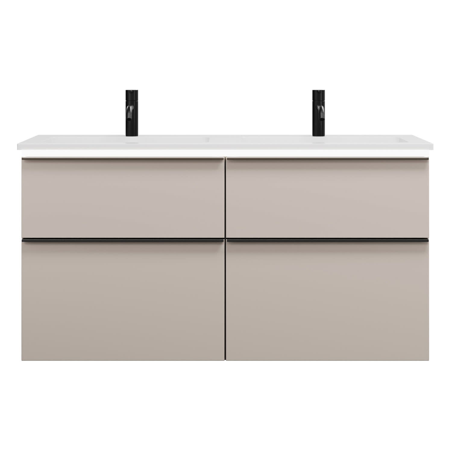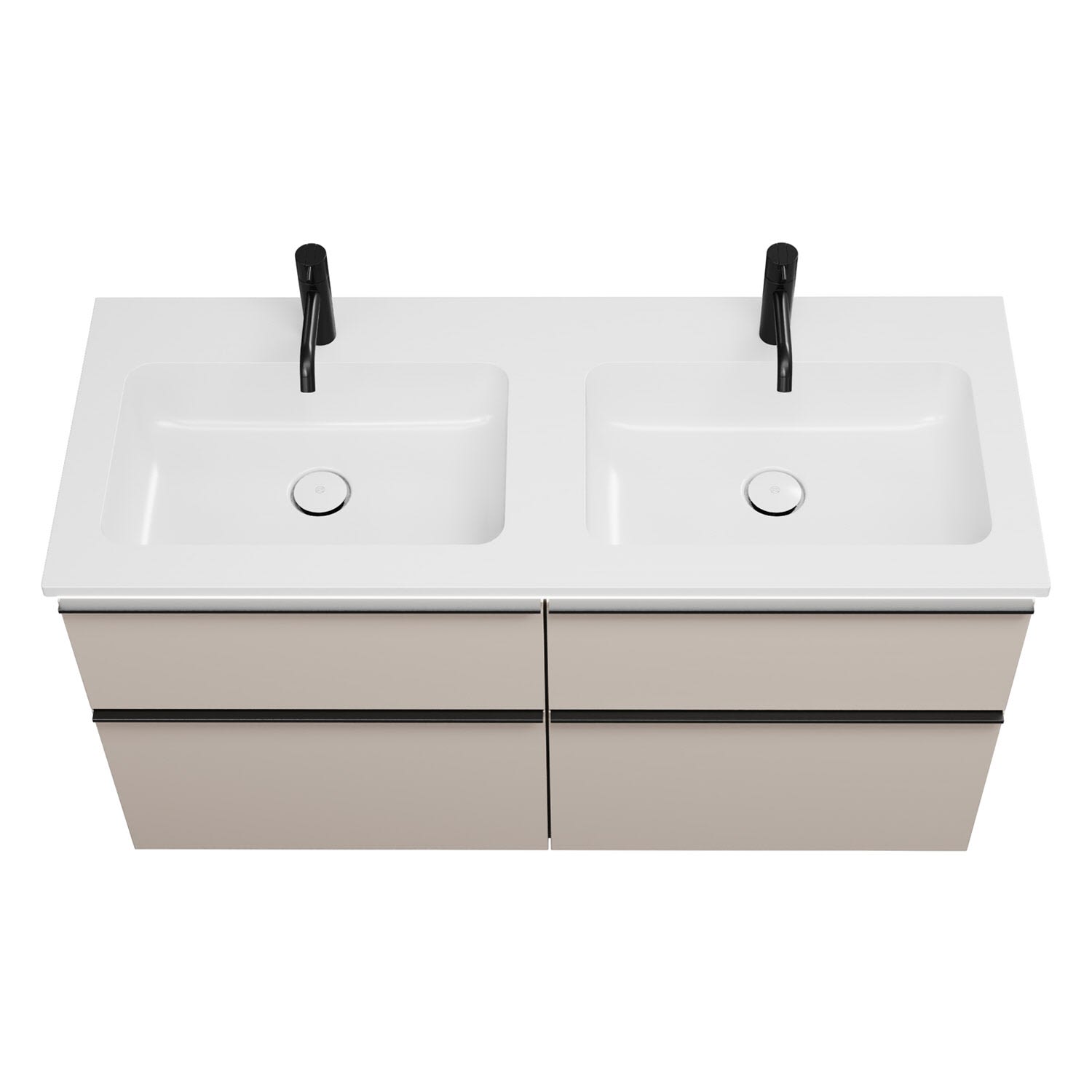 burgbad Eqio Waschtischkombination mit Mineralguss-Doppelwaschtisch und LED-Beleuchtung, 122 cm, mit Griffleiste G0252