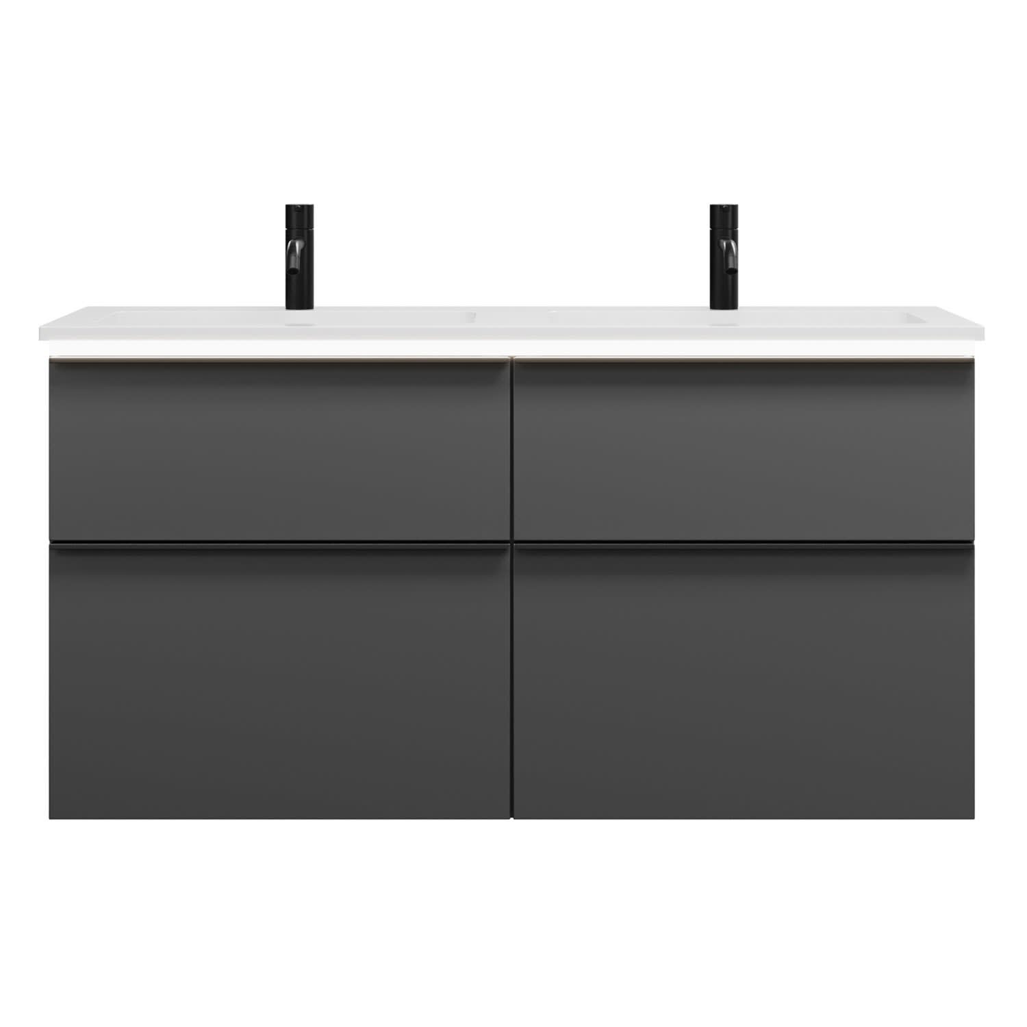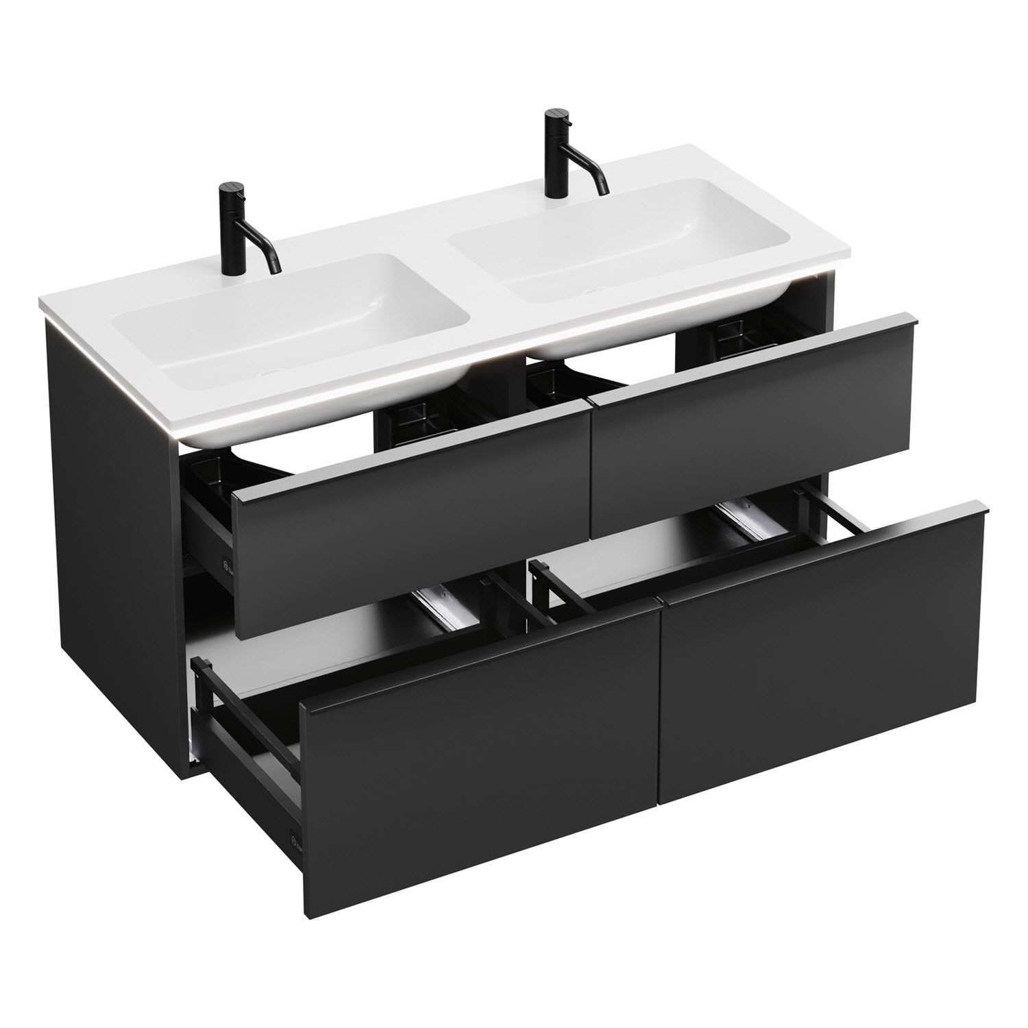 burgbad Eqio Waschtischkombination mit Mineralguss-Doppelwaschtisch und LED-Beleuchtung, 122 cm, mit Griffleiste G0252