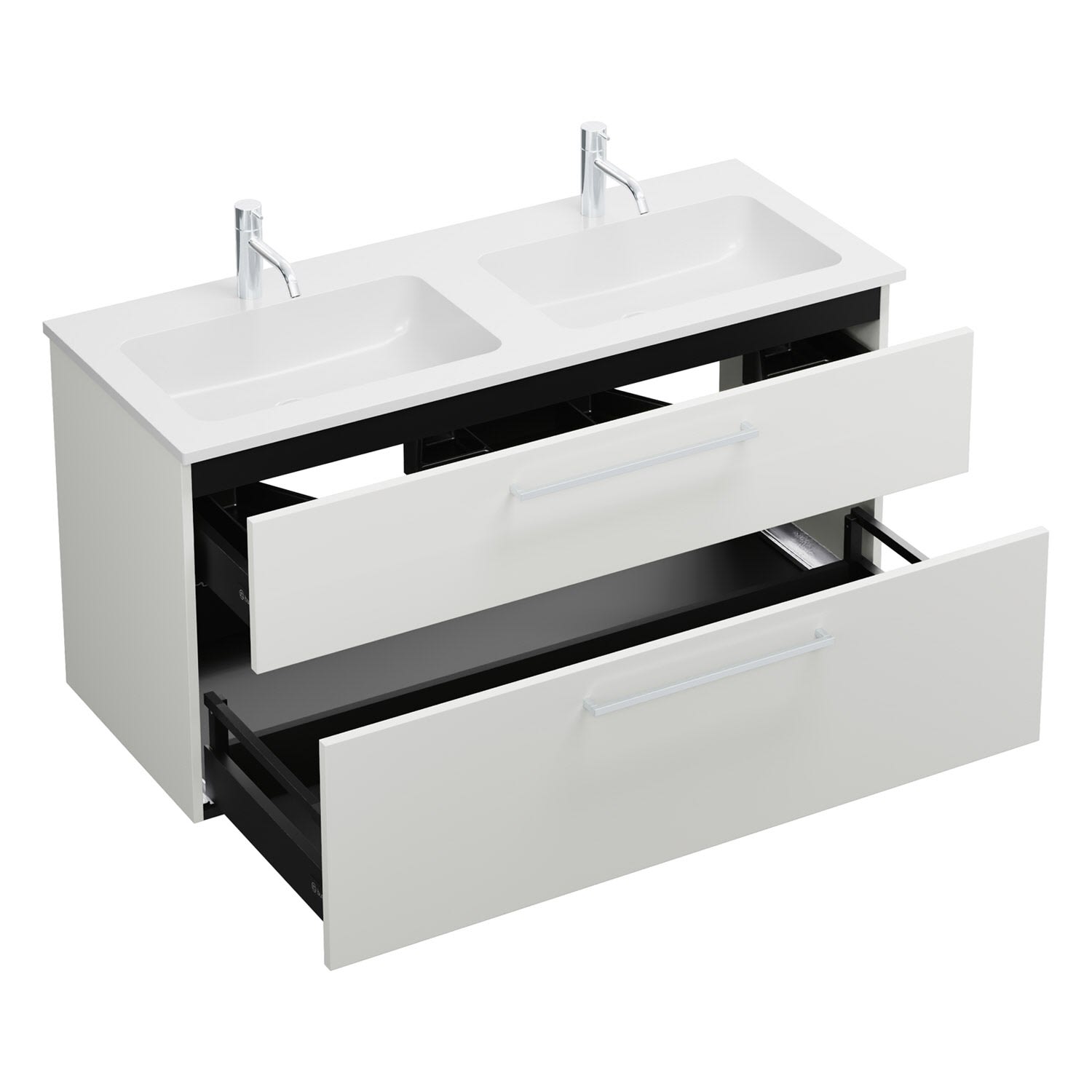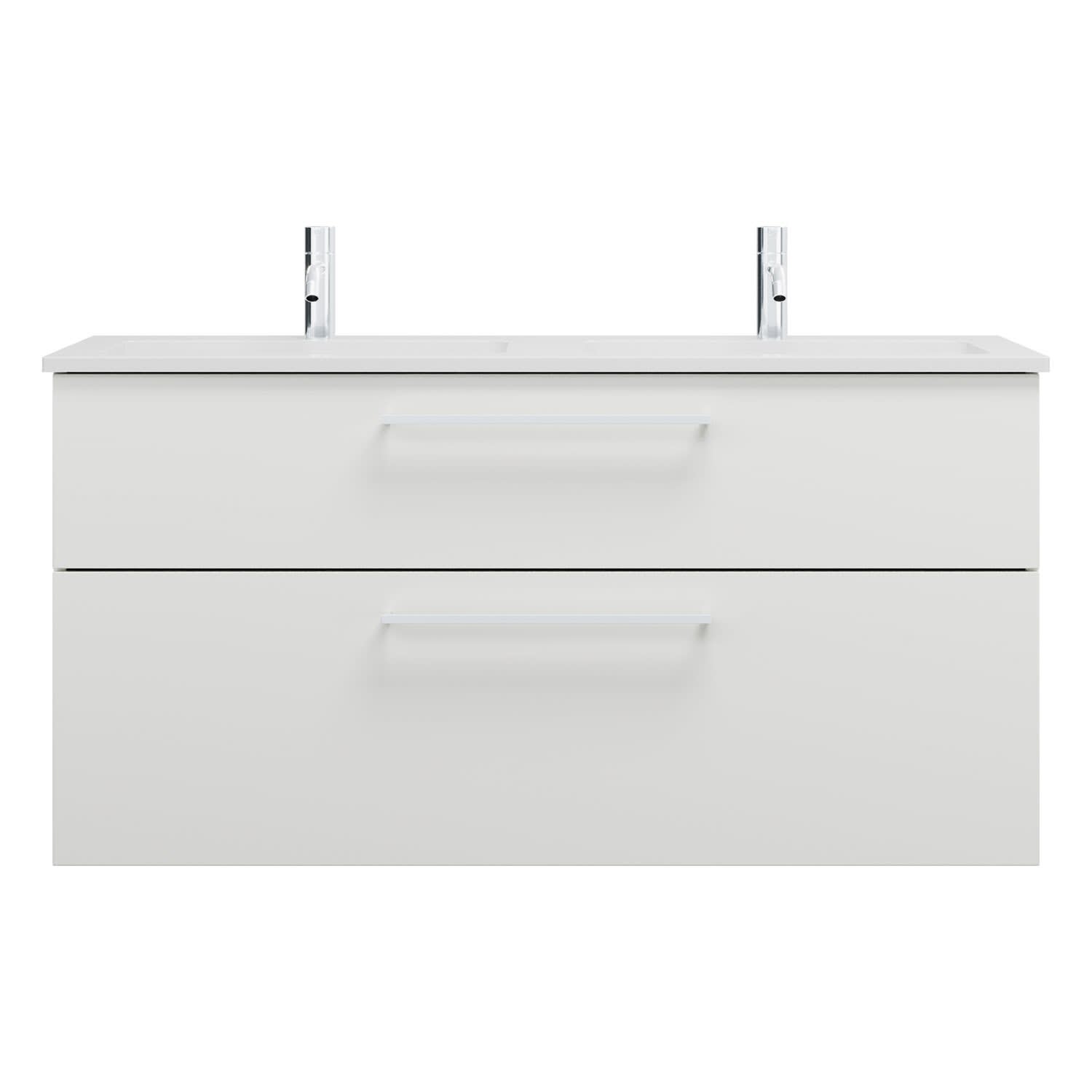 burgbad Eqio Waschtischkombination mit Mineralguss-Doppelwaschtisch, 122 cm, mit Stangengriff P95