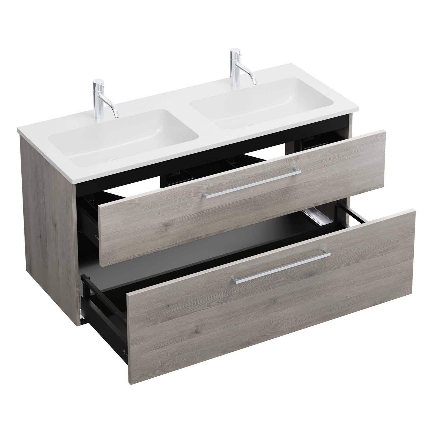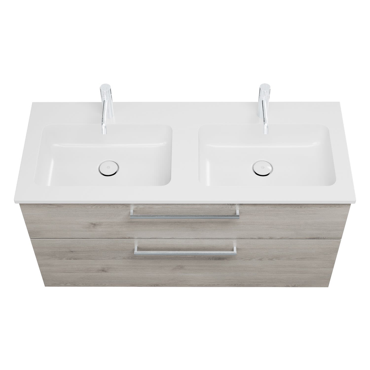 burgbad Eqio Waschtischkombination mit Mineralguss-Doppelwaschtisch, 122 cm, mit Stangengriff P95