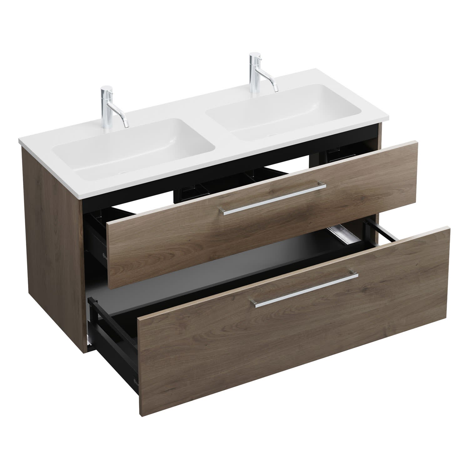 burgbad Eqio Waschtischkombination mit Mineralguss-Doppelwaschtisch, 122 cm, mit Stangengriff P95
