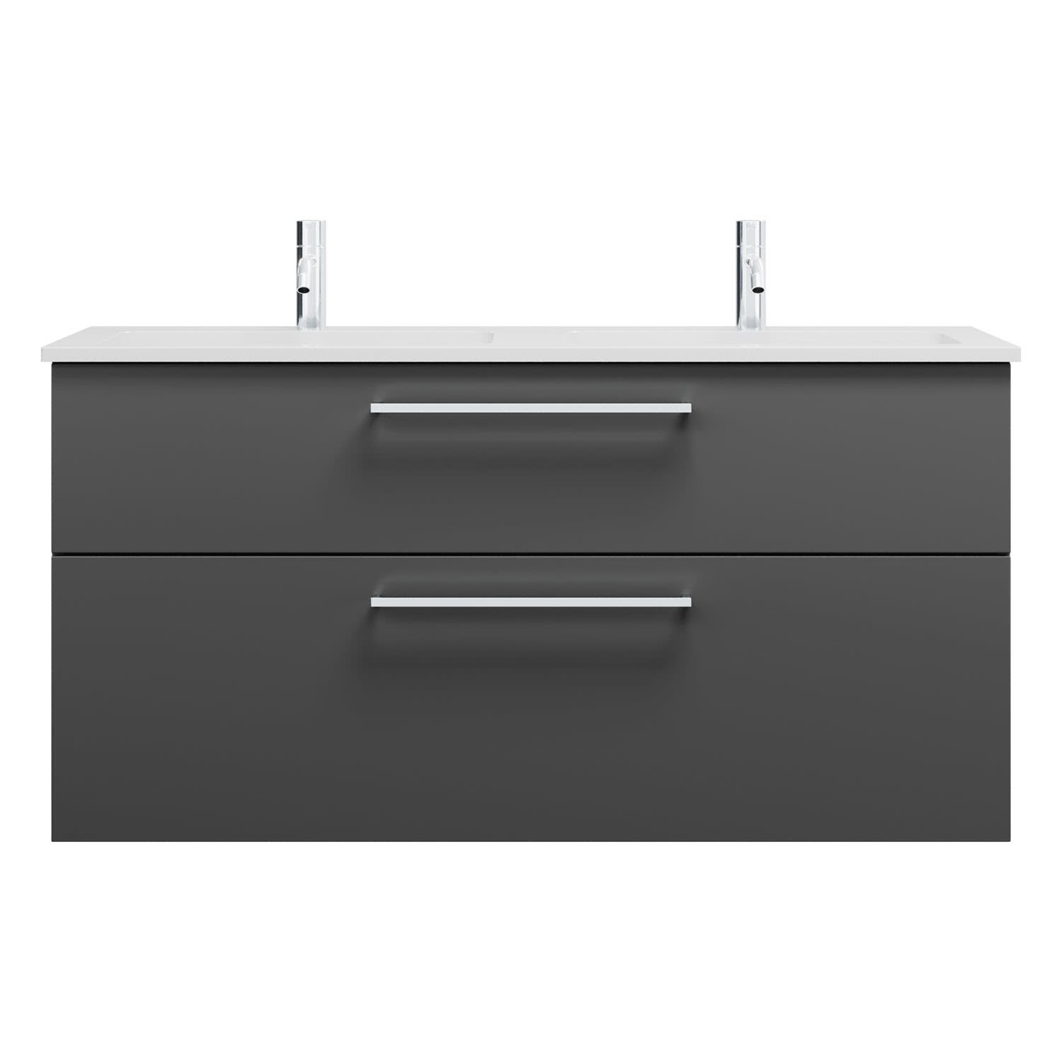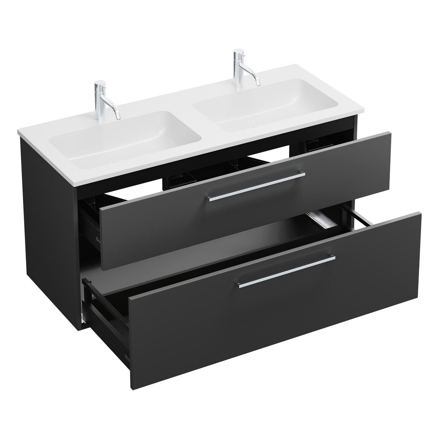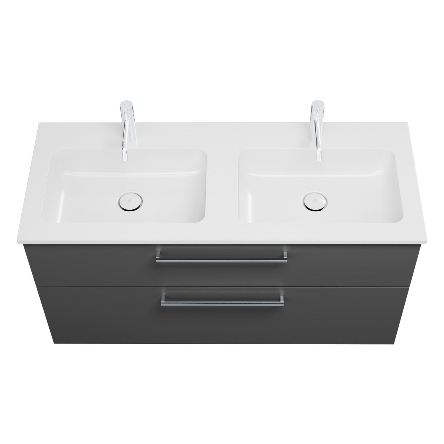 burgbad Eqio Waschtischkombination mit Mineralguss-Doppelwaschtisch, 122 cm, mit Stangengriff P95