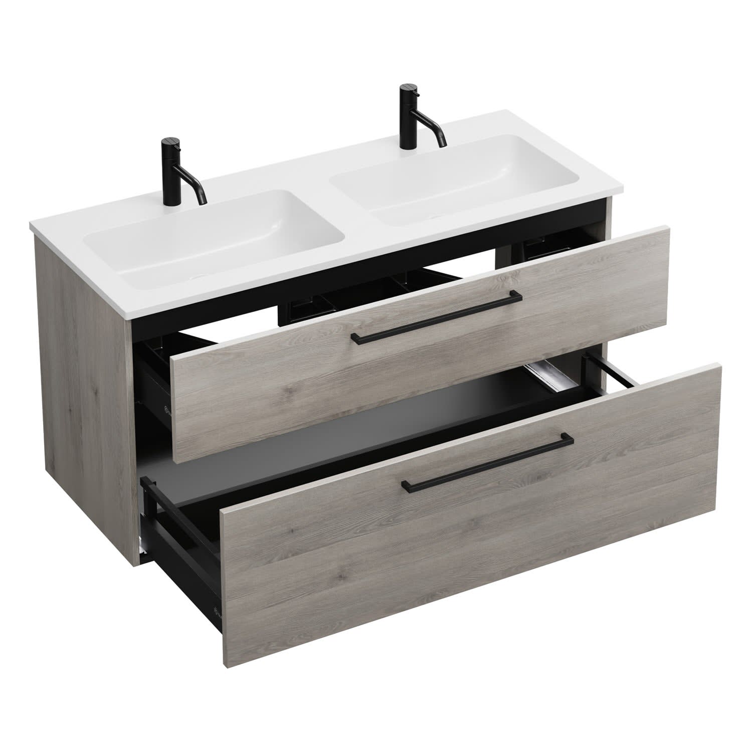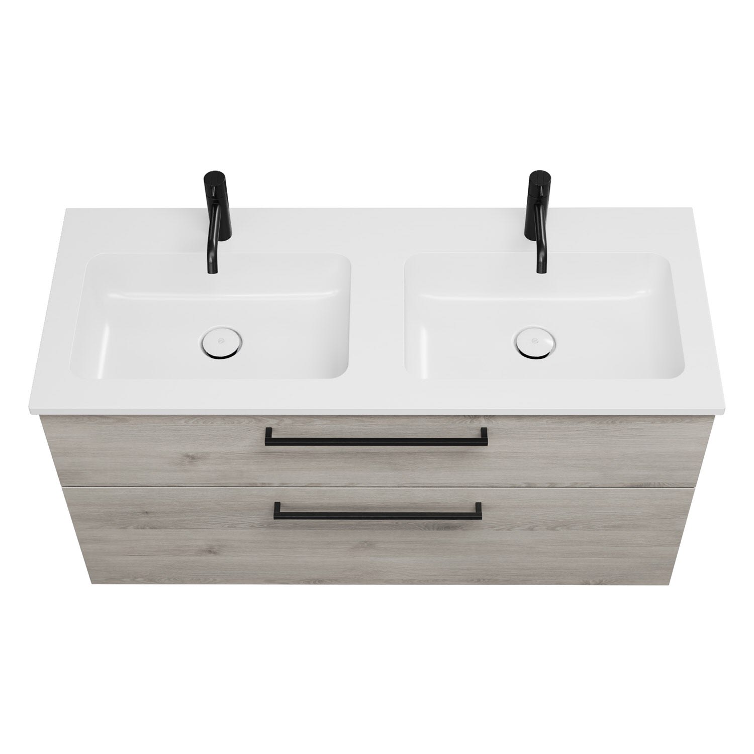 burgbad Eqio Waschtischkombination mit Mineralguss-Doppelwaschtisch, 122 cm, mit Stangengriff G0234