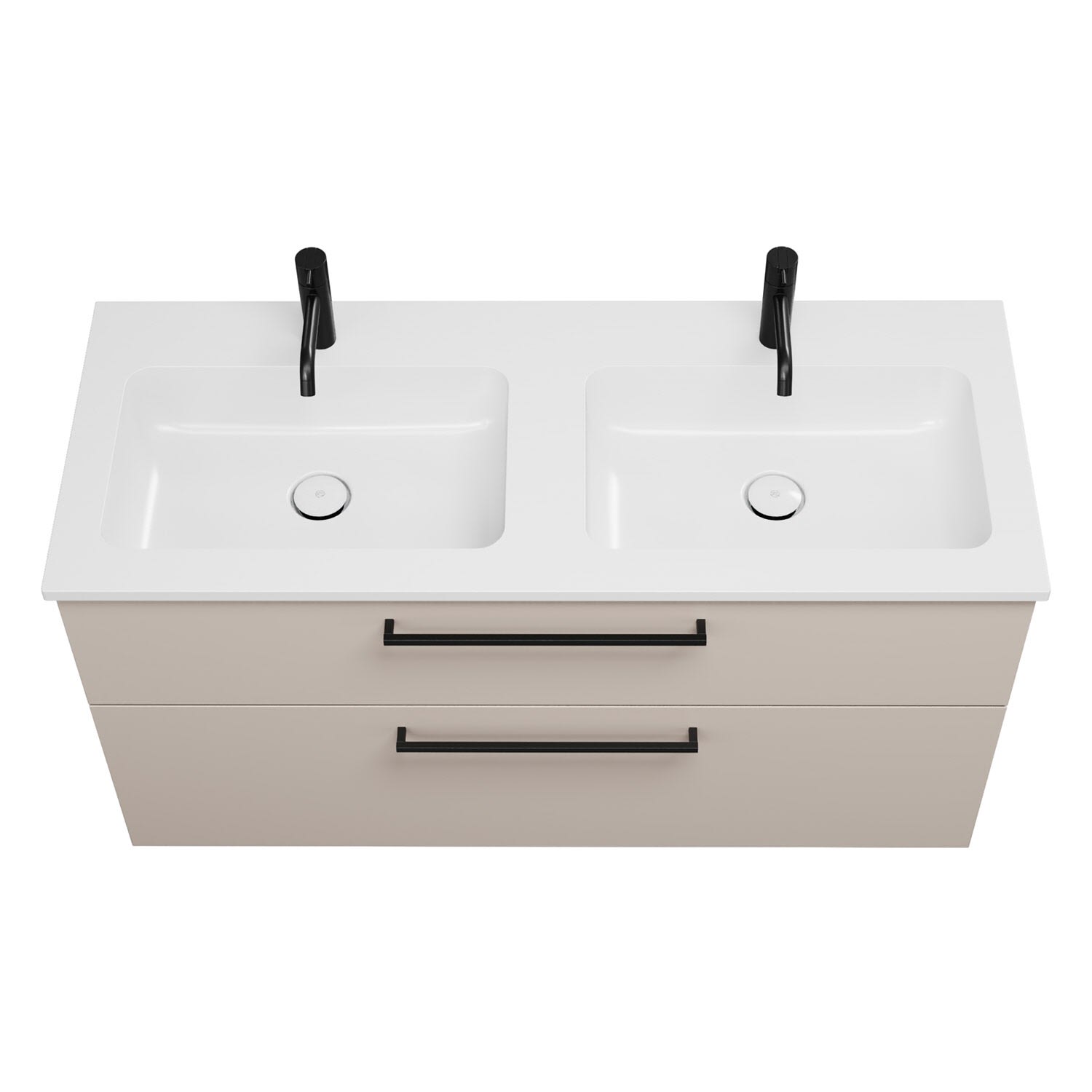 burgbad Eqio Waschtischkombination mit Mineralguss-Doppelwaschtisch, 122 cm, mit Stangengriff G0234