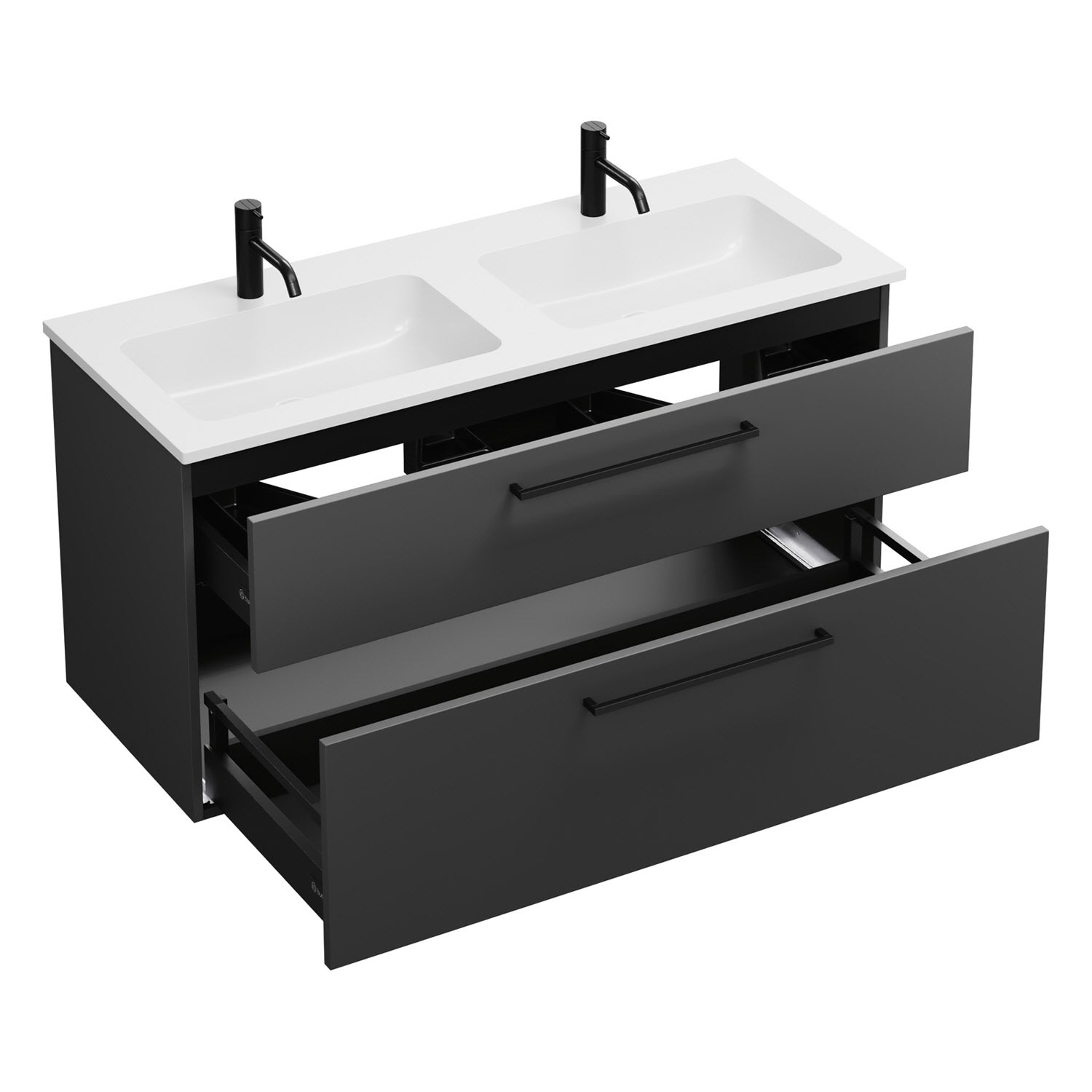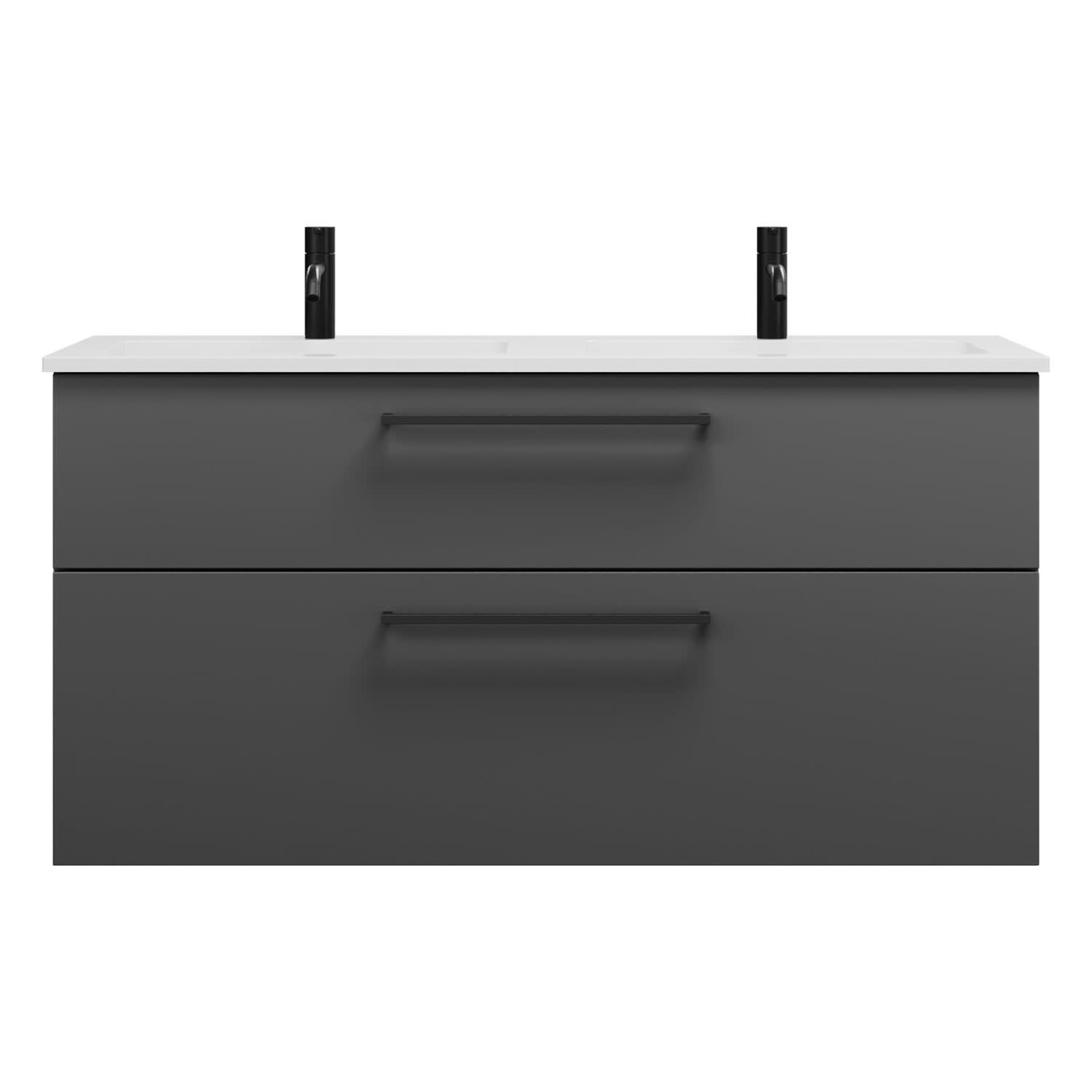 burgbad Eqio Waschtischkombination mit Mineralguss-Doppelwaschtisch, 122 cm, mit Stangengriff G0234