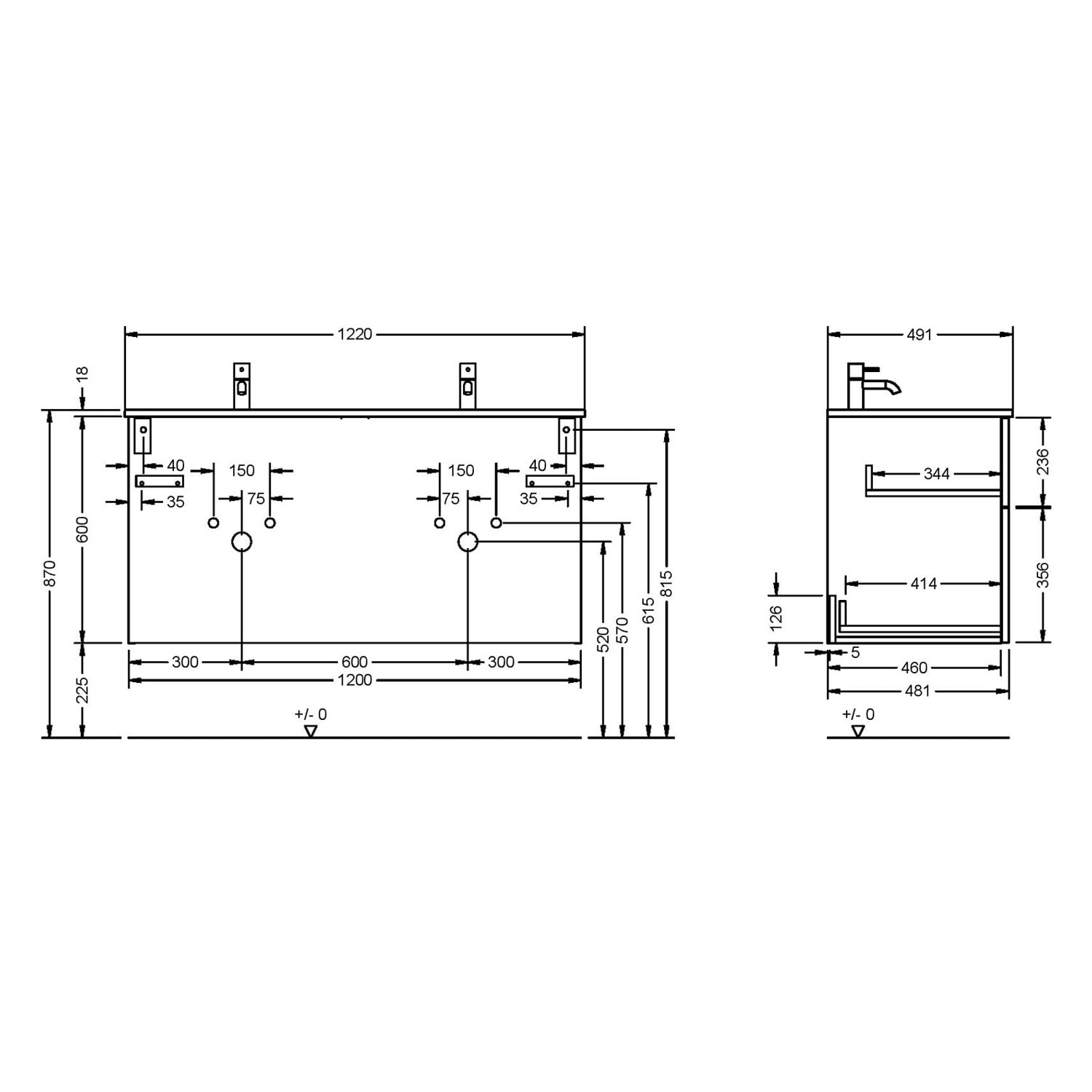 - Beckenmaß je 50 x 30,5 cm