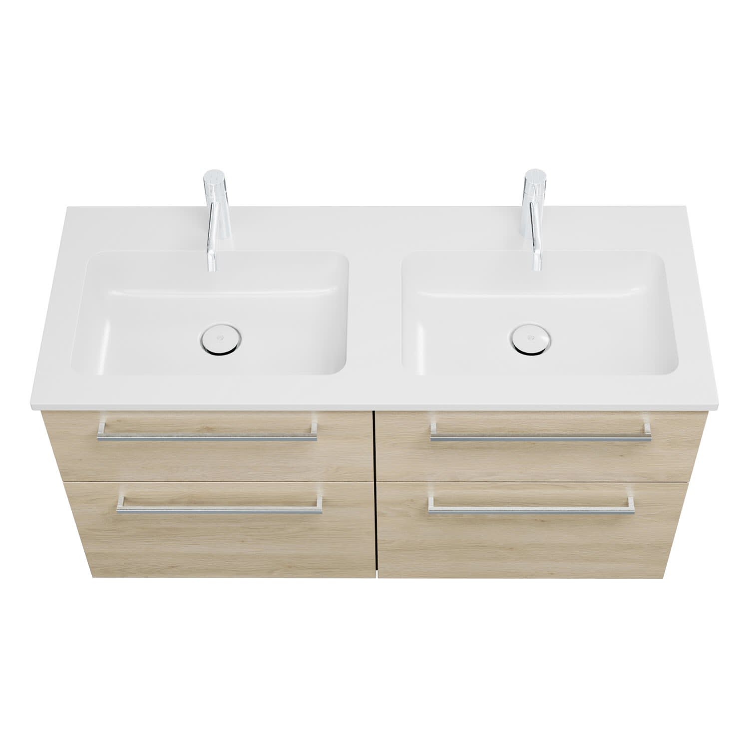 burgbad Eqio Waschtischkombination mit Mineralguss-Doppelwaschtisch, 122 cm, mit Stangengriff P95
