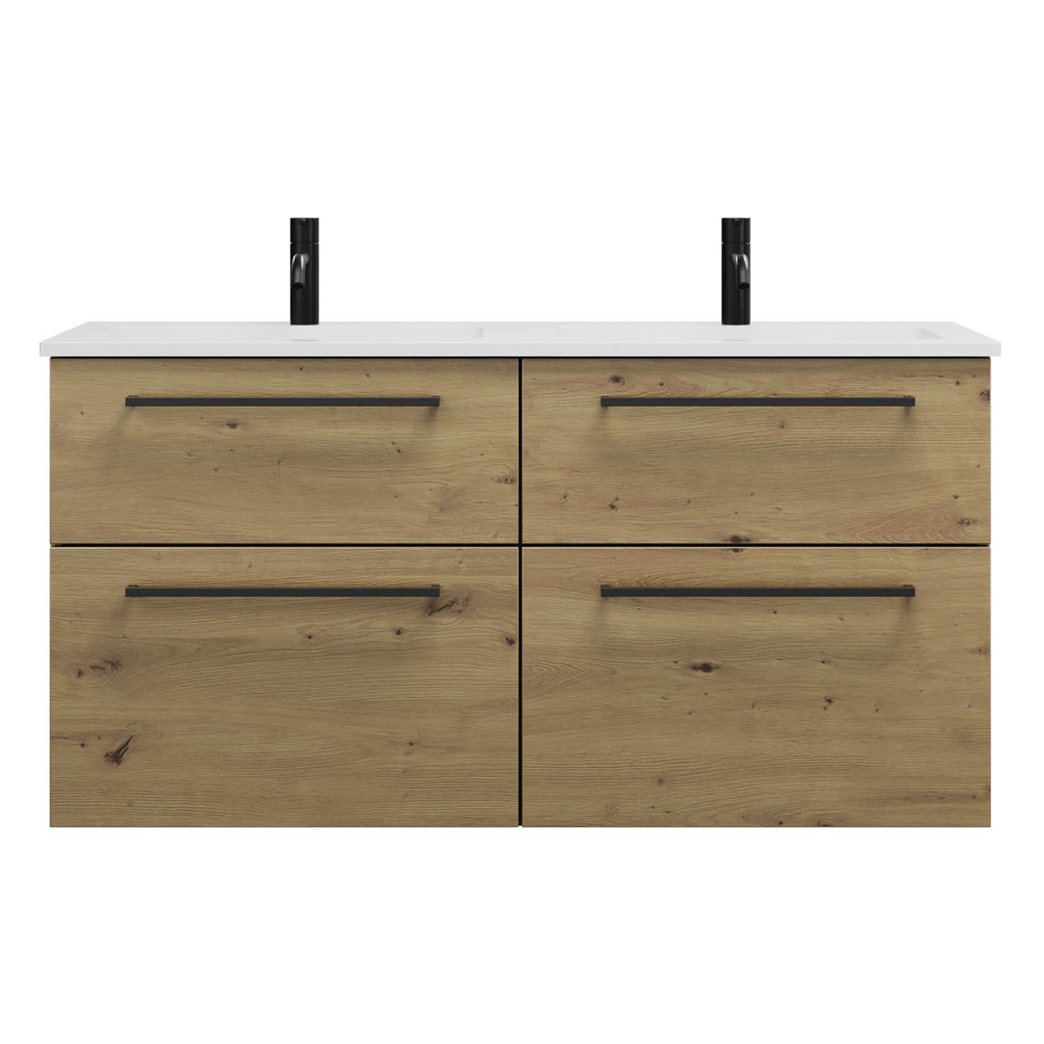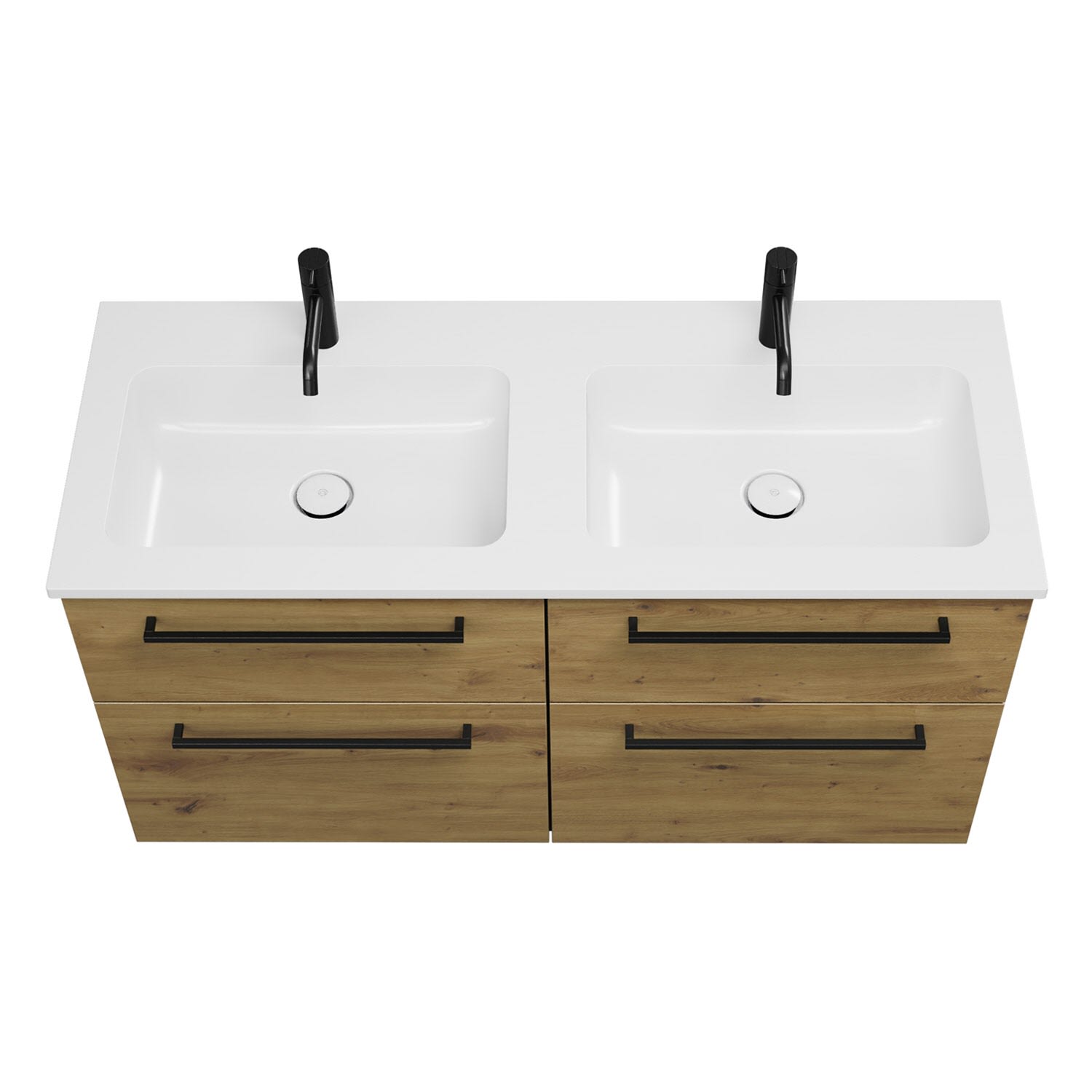burgbad Eqio Waschtischkombination mit Mineralguss-Doppelwaschtisch, 122 cm, mit Stangengriff G0234