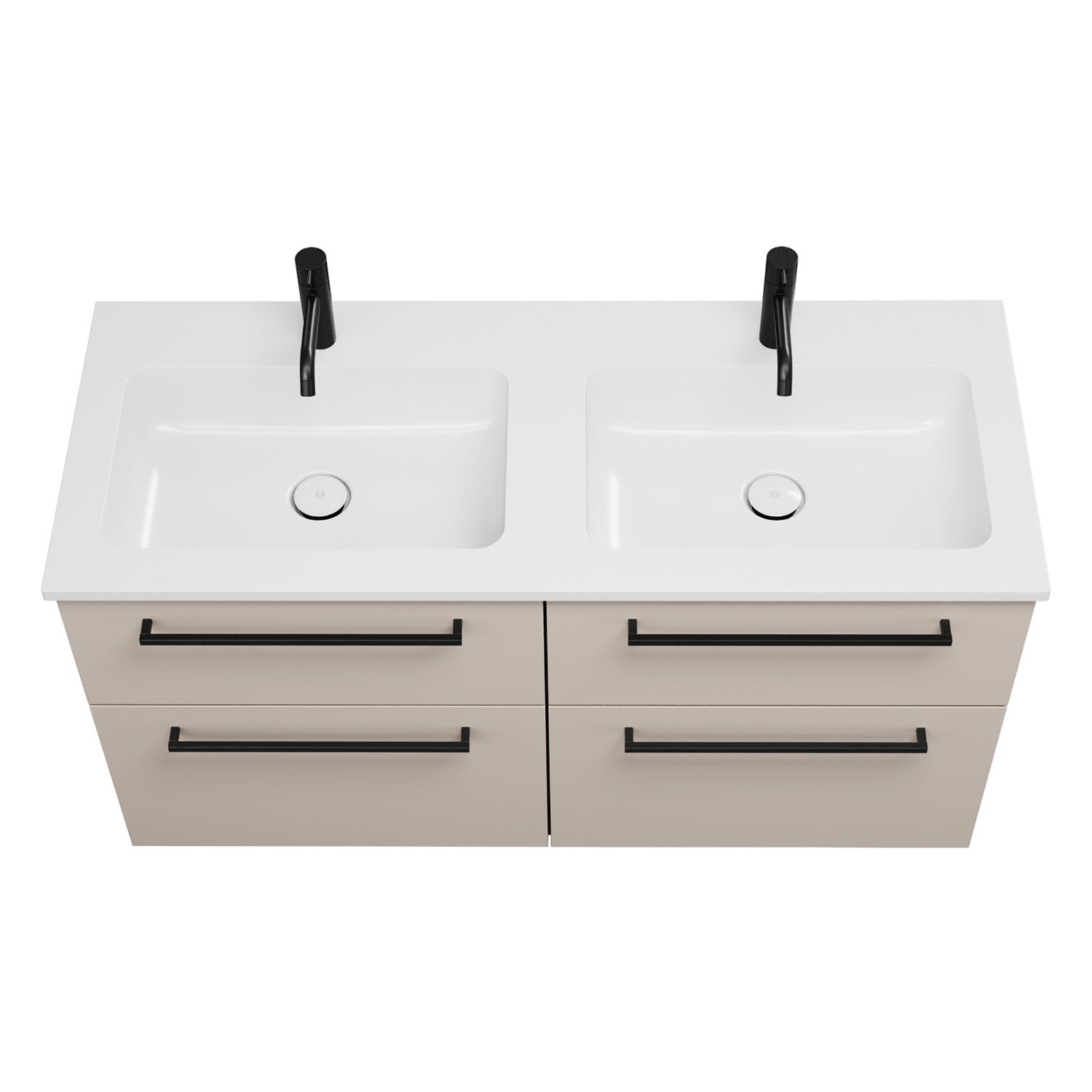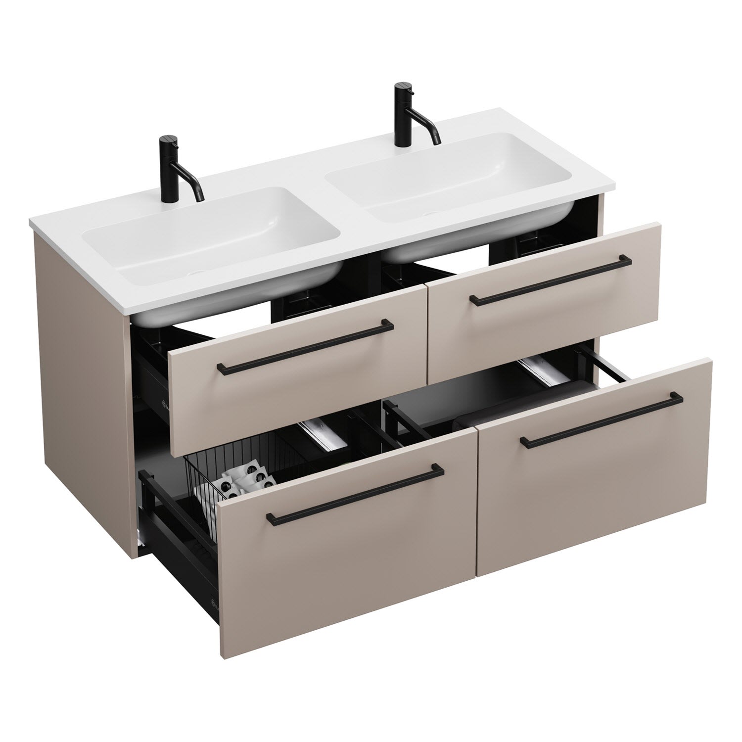 burgbad Eqio Waschtischkombination mit Mineralguss-Doppelwaschtisch, 122 cm, mit Stangengriff G0234