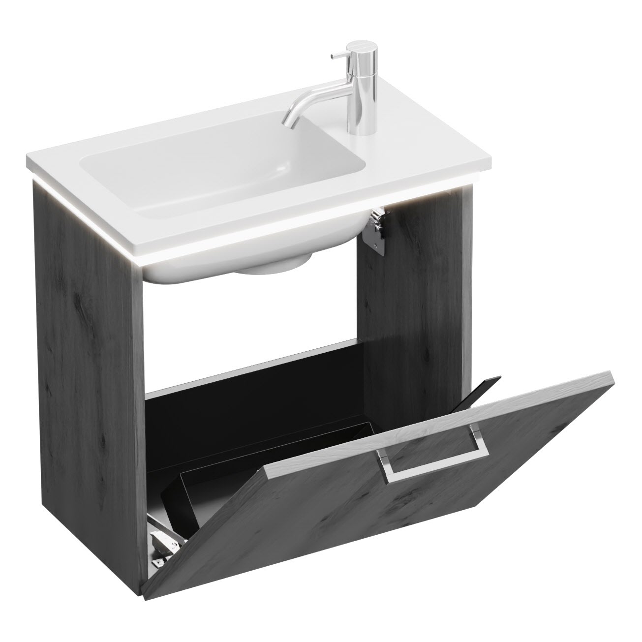 burgbad Eqio Waschtischkombination mit Mineralguss-Waschtisch und LED-Beleuchtung, 52 cm, mit Stangengriff P95