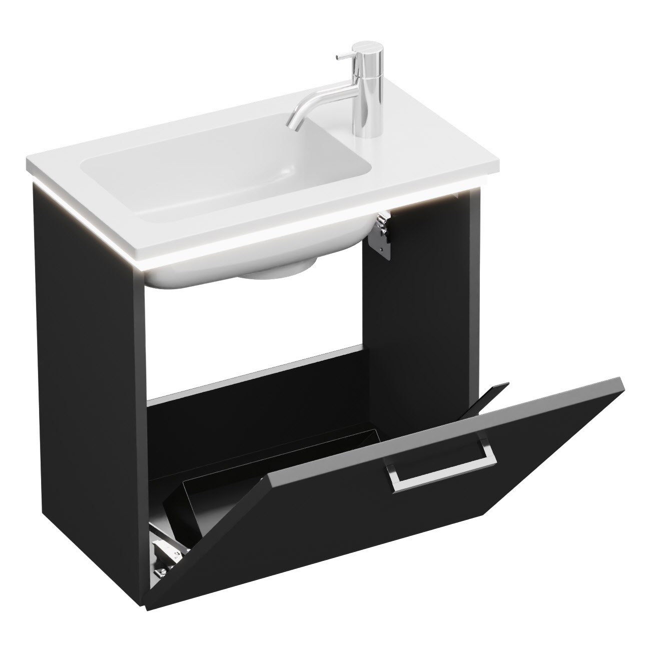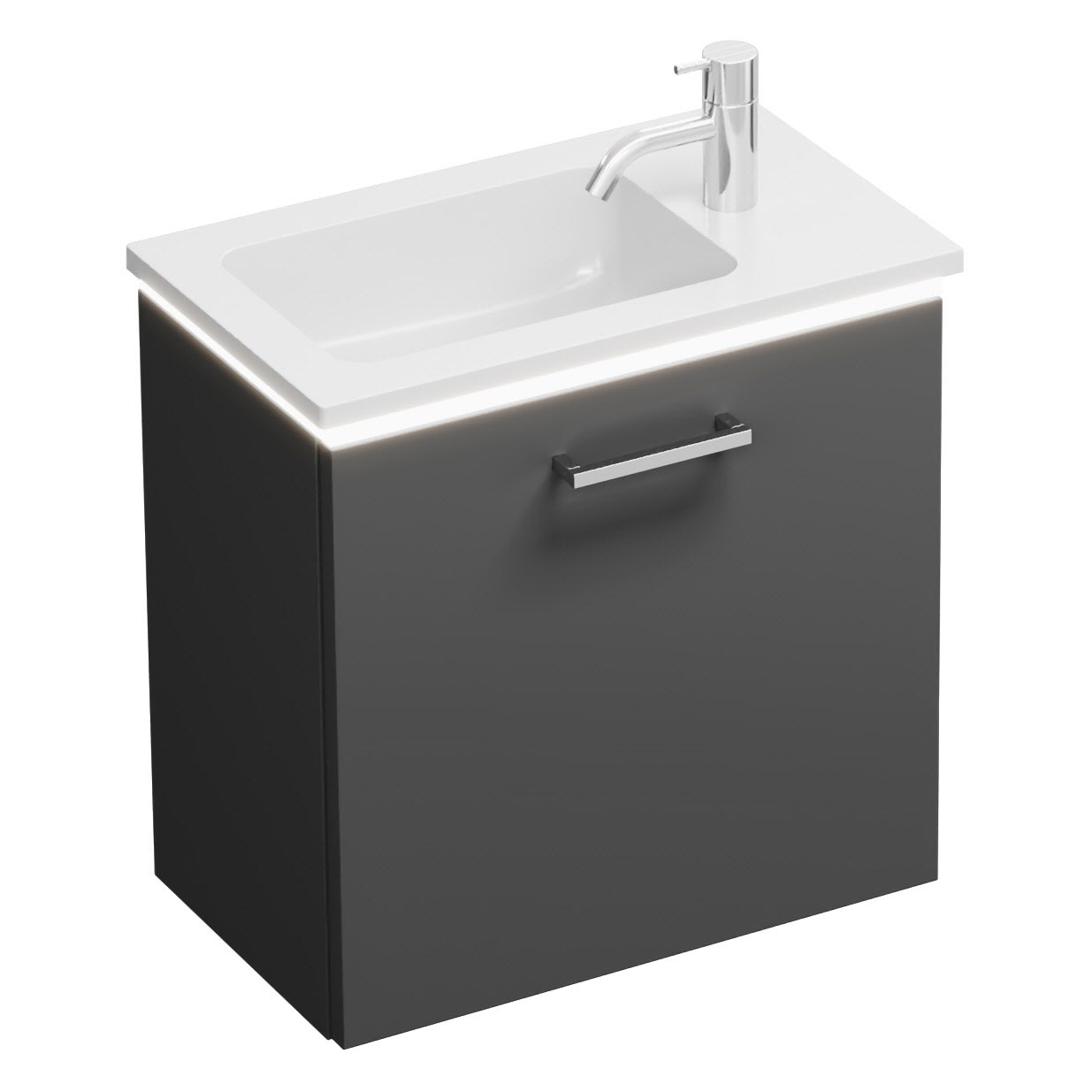 burgbad Eqio Waschtischkombination mit Mineralguss-Waschtisch und LED-Beleuchtung, 52 cm, mit Stangengriff P95