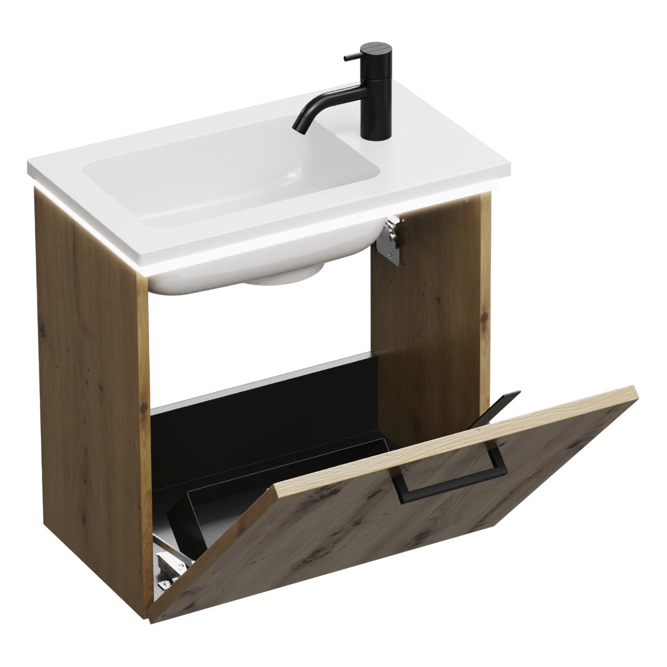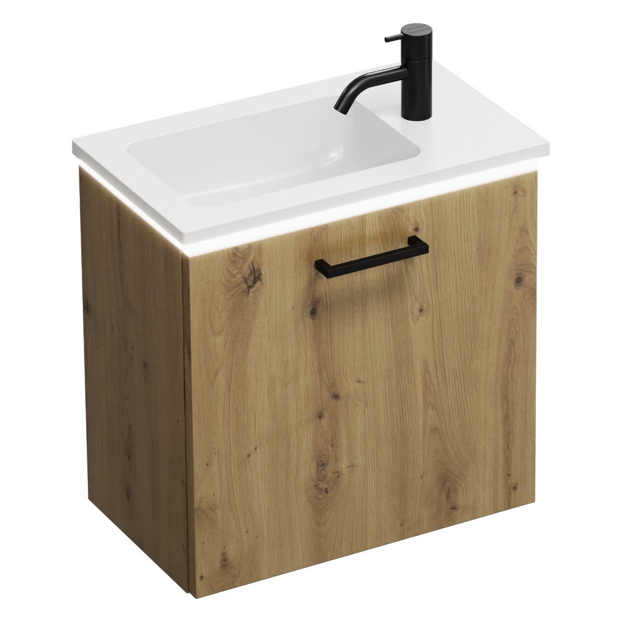 burgbad Eqio Waschtischkombination mit Mineralguss-Waschtisch und LED-Beleuchtung, 52 cm, mit Stangengriff G0234