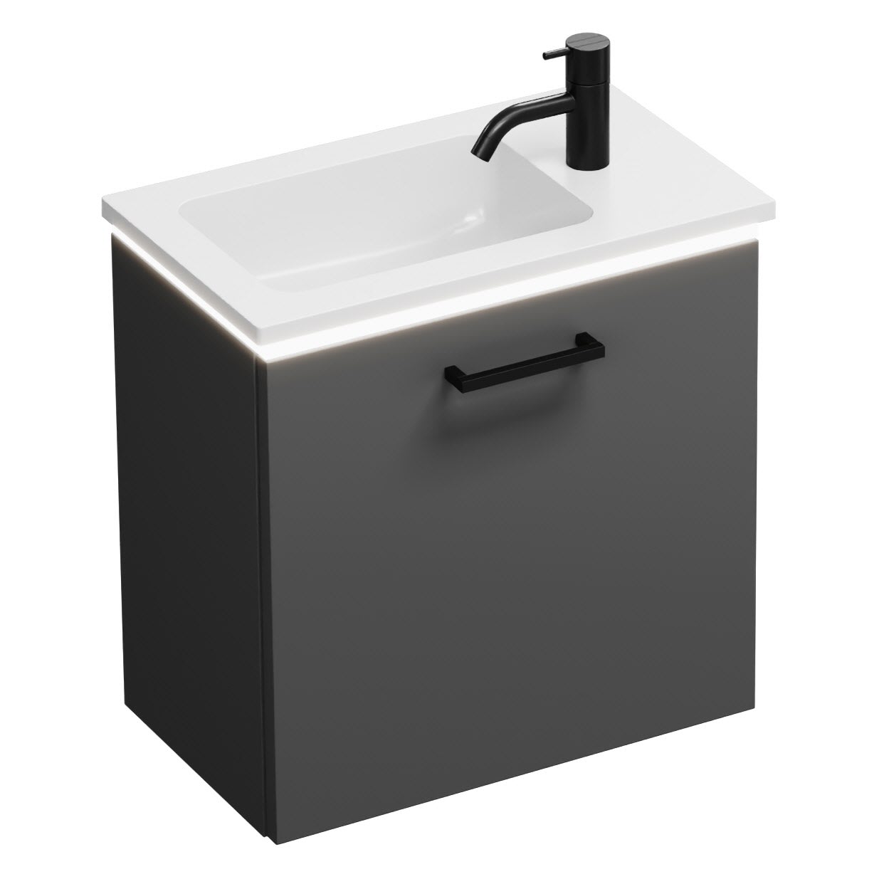 burgbad Eqio Waschtischkombination mit Mineralguss-Waschtisch und LED-Beleuchtung, 52 cm, mit Stangengriff G0234