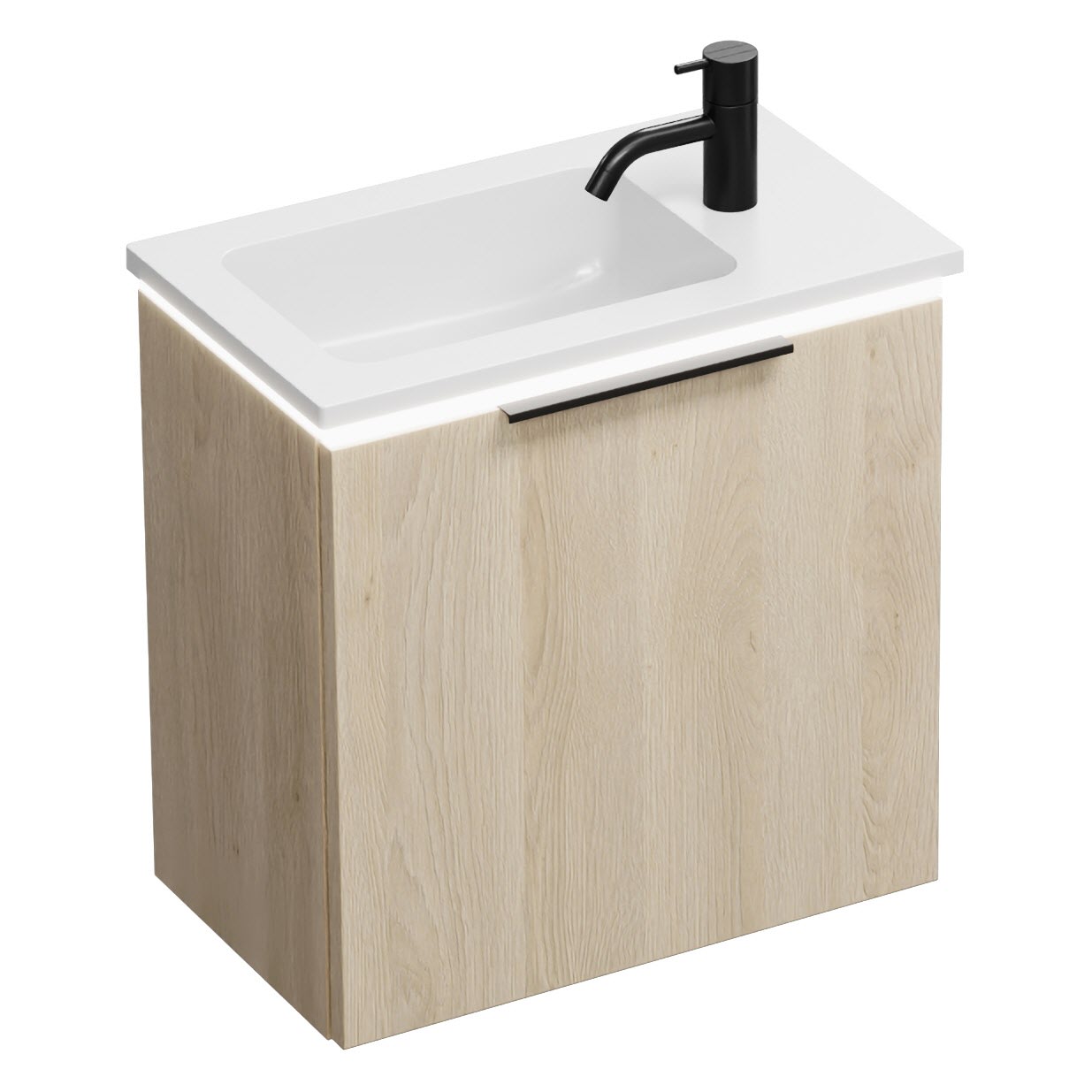 burgbad Eqio Waschtischkombination mit Mineralguss-Waschtisch und LED-Beleuchtung, 52 cm, mit Griff G0200