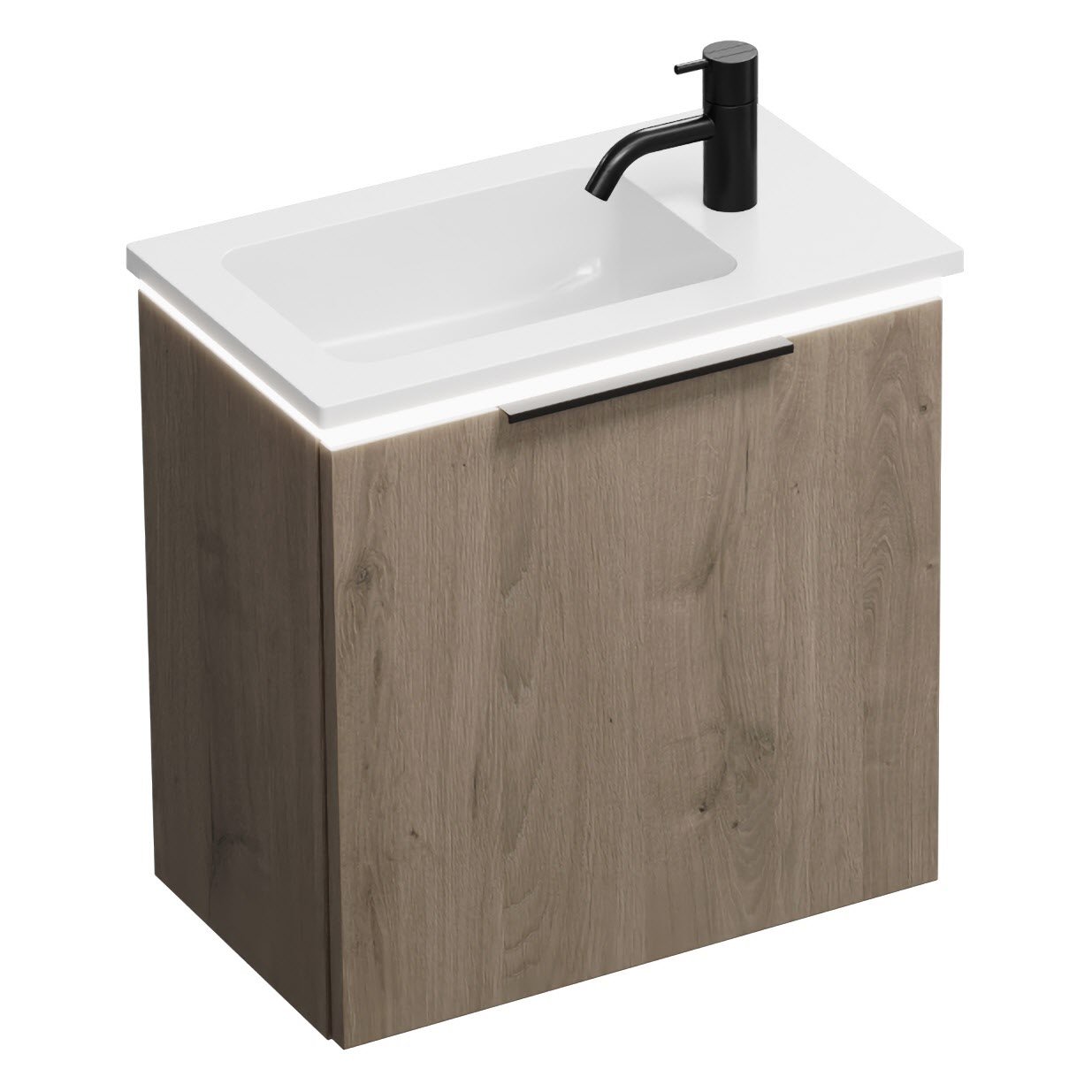 burgbad Eqio Waschtischkombination mit Mineralguss-Waschtisch und LED-Beleuchtung, 52 cm, mit Griff G0200
