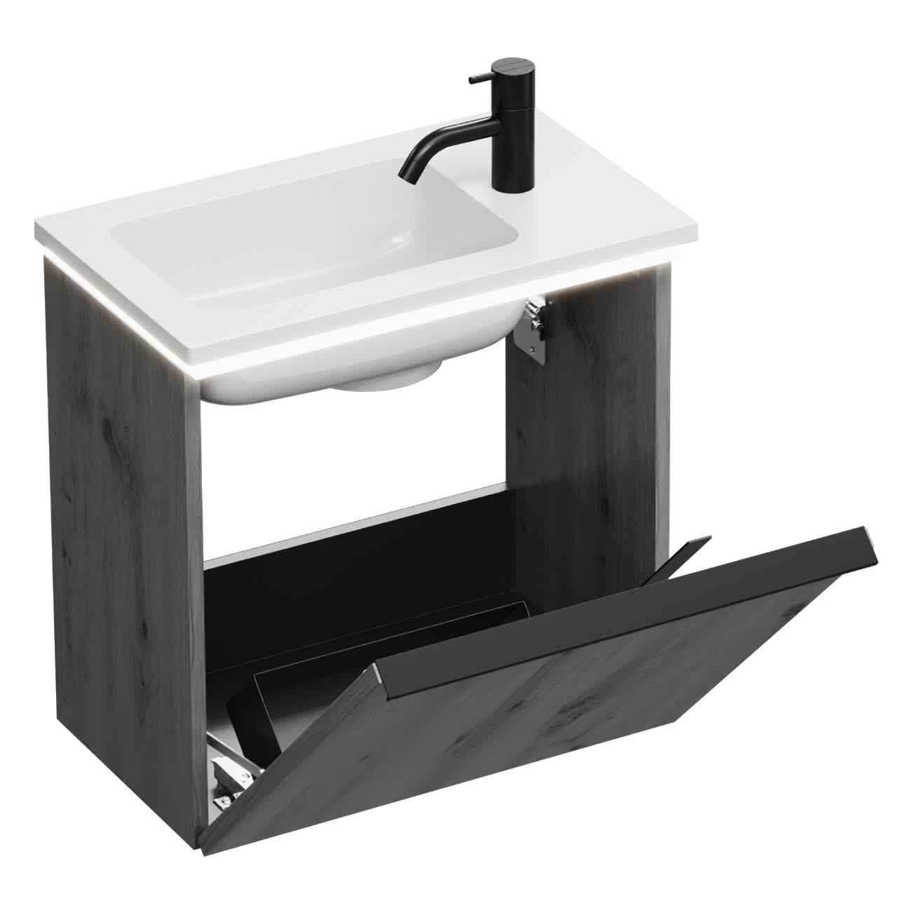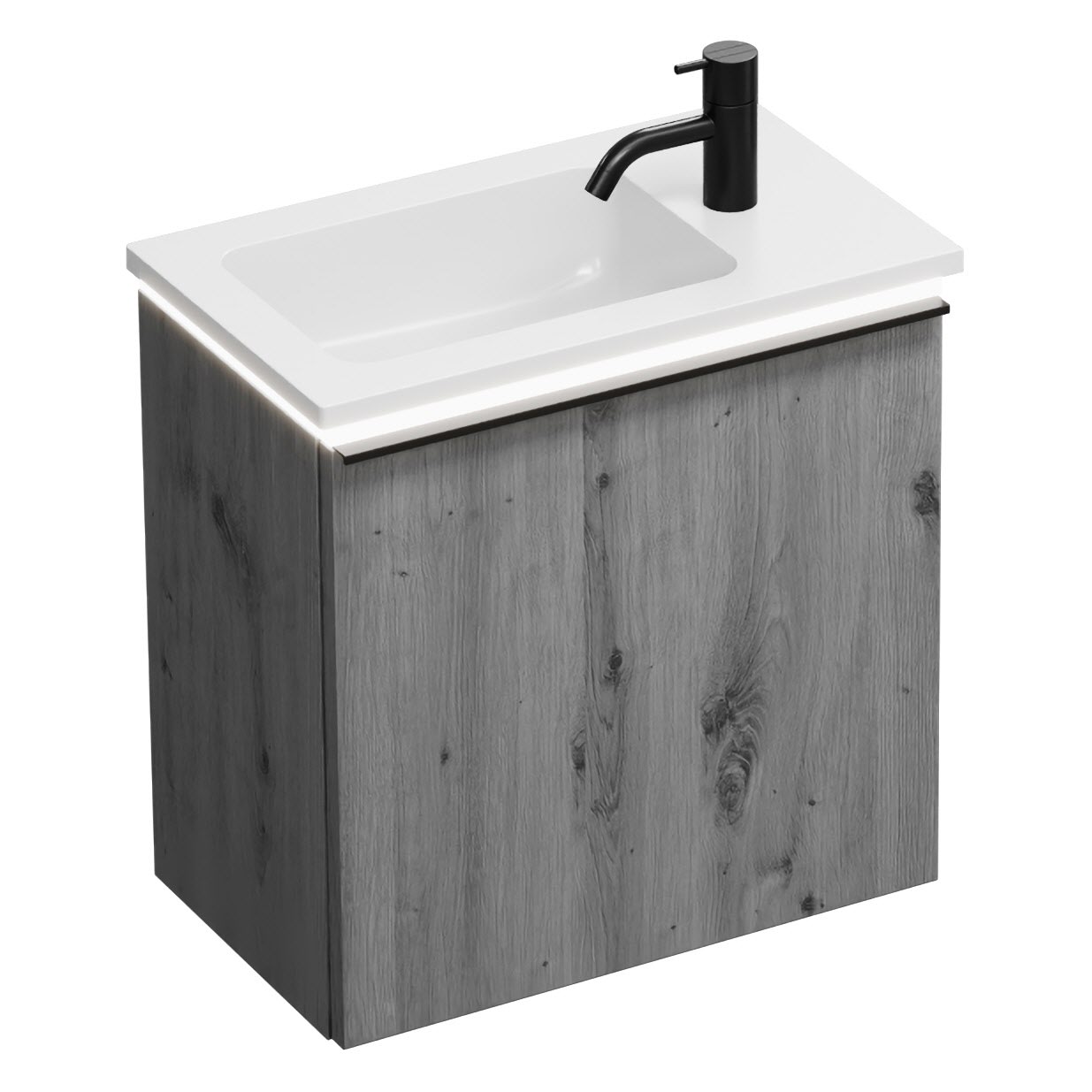 burgbad Eqio Waschtischkombination mit Mineralguss-Waschtisch und LED-Beleuchtung, 52 cm, mit Griffleiste G0252