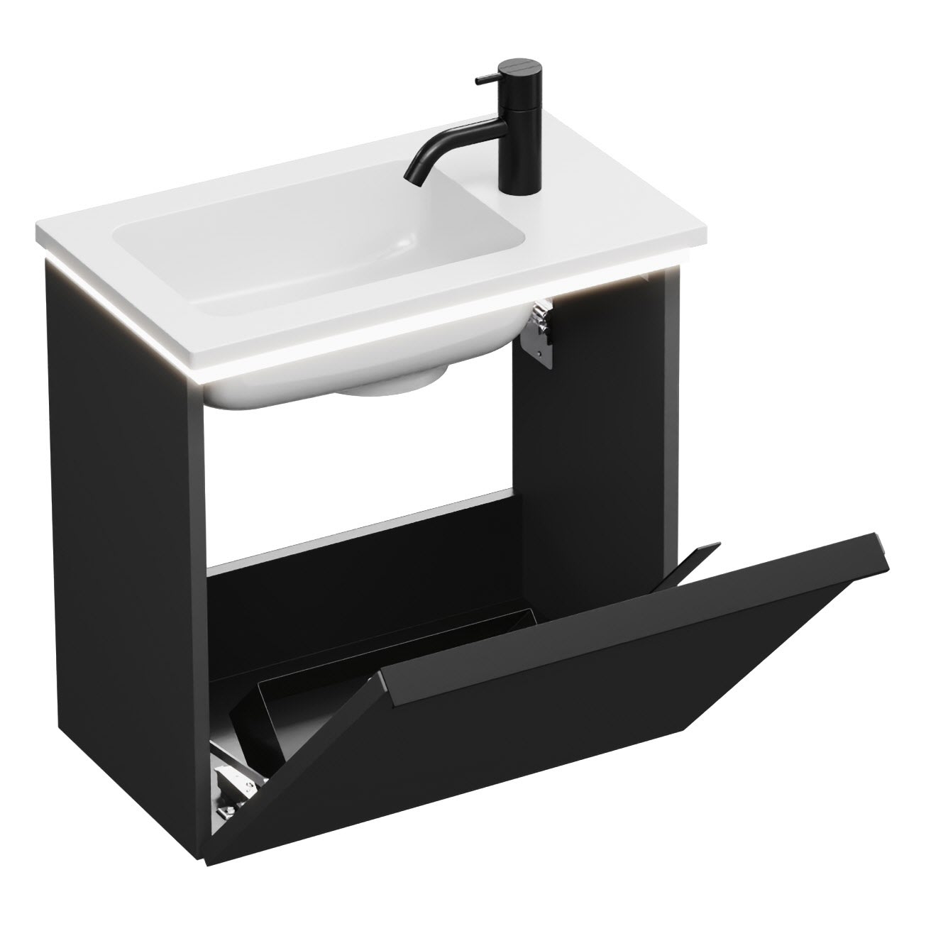 burgbad Eqio Waschtischkombination mit Mineralguss-Waschtisch und LED-Beleuchtung, 52 cm, mit Griffleiste G0252