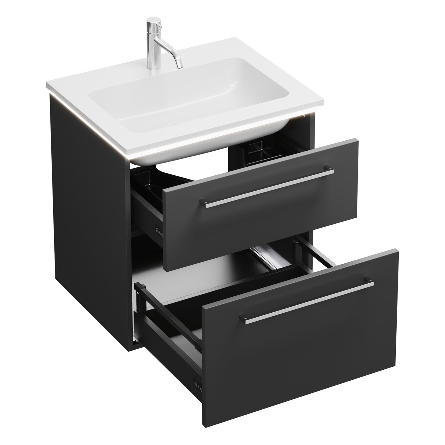 burgbad Eqio Waschtischkombination mit Mineralguss-Waschtisch und LED-Beleuchtung, 62 cm, mit Stangengriff P95