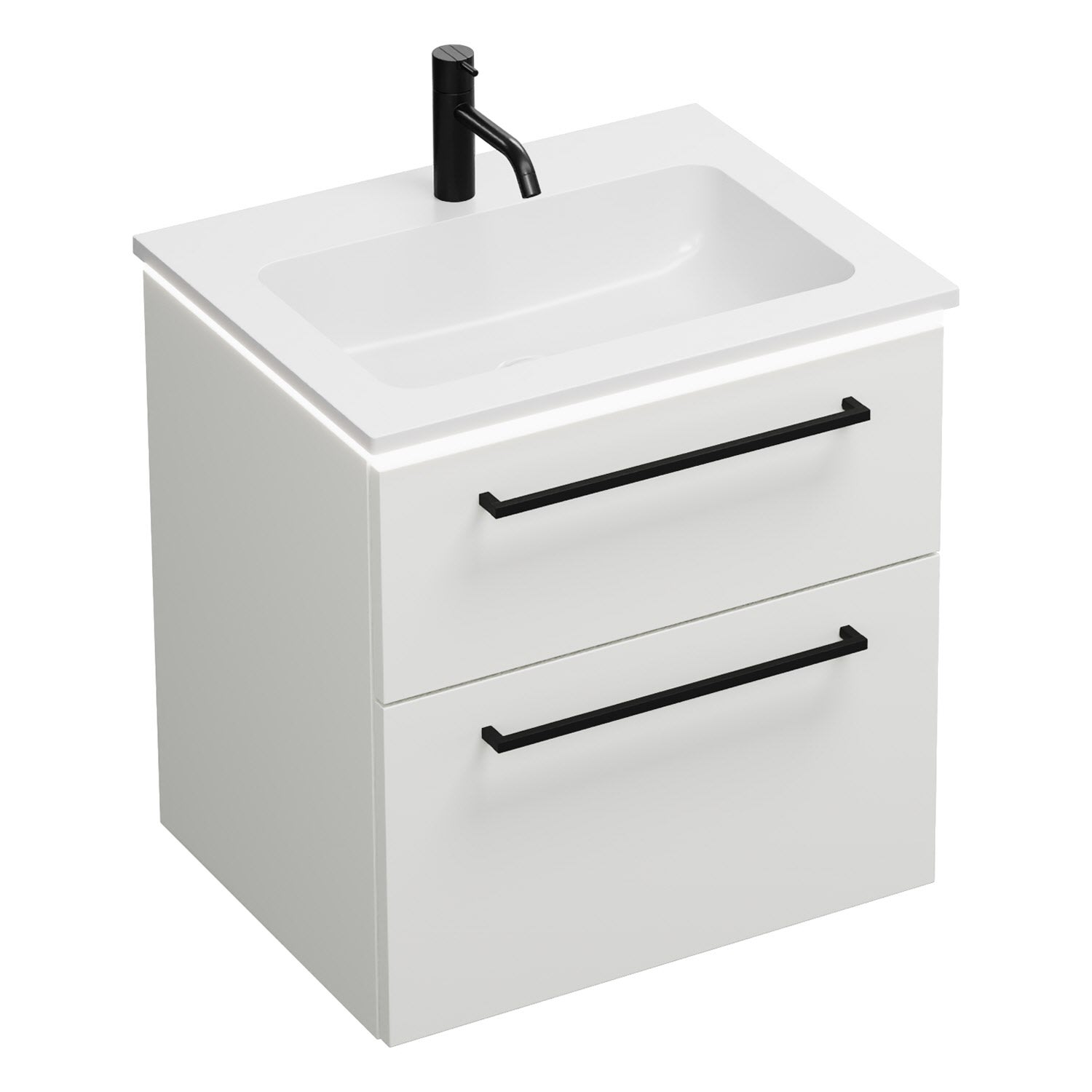 burgbad Eqio Waschtischkombination mit Mineralguss-Waschtisch und LED-Beleuchtung, 62 cm, mit Stangengriff G0234