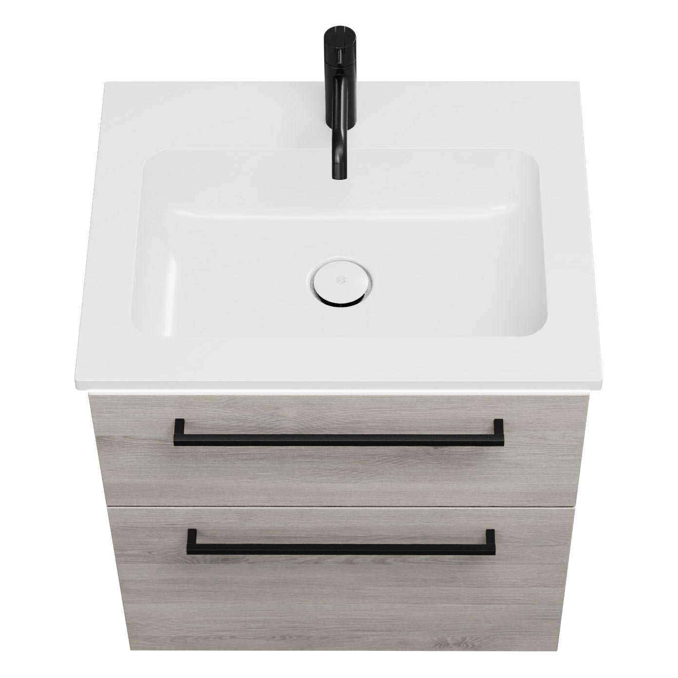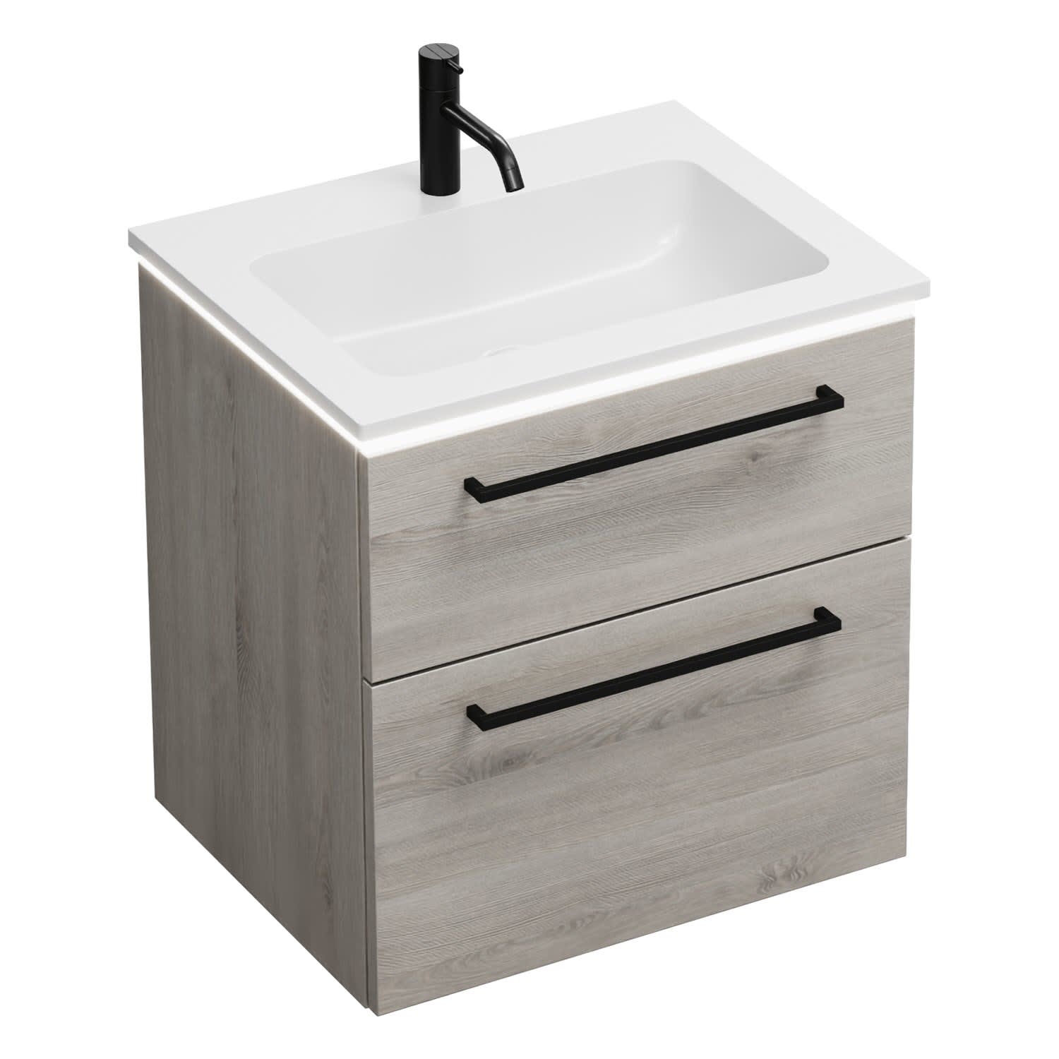 burgbad Eqio Waschtischkombination mit Mineralguss-Waschtisch und LED-Beleuchtung, 62 cm, mit Stangengriff G0234