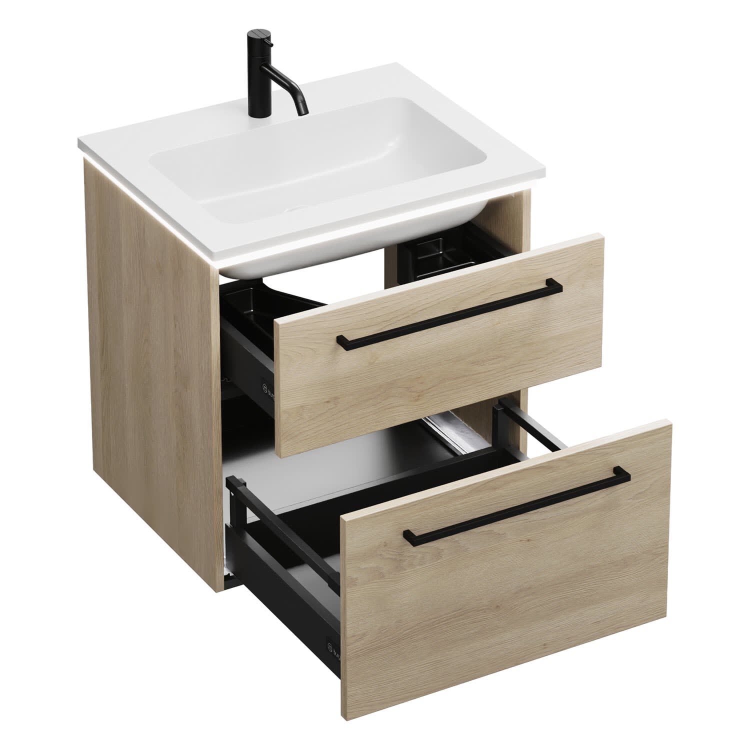 - 1 Schublade oben, 35 cm tief, mit Siphonausschnitt und Inneneinteilung