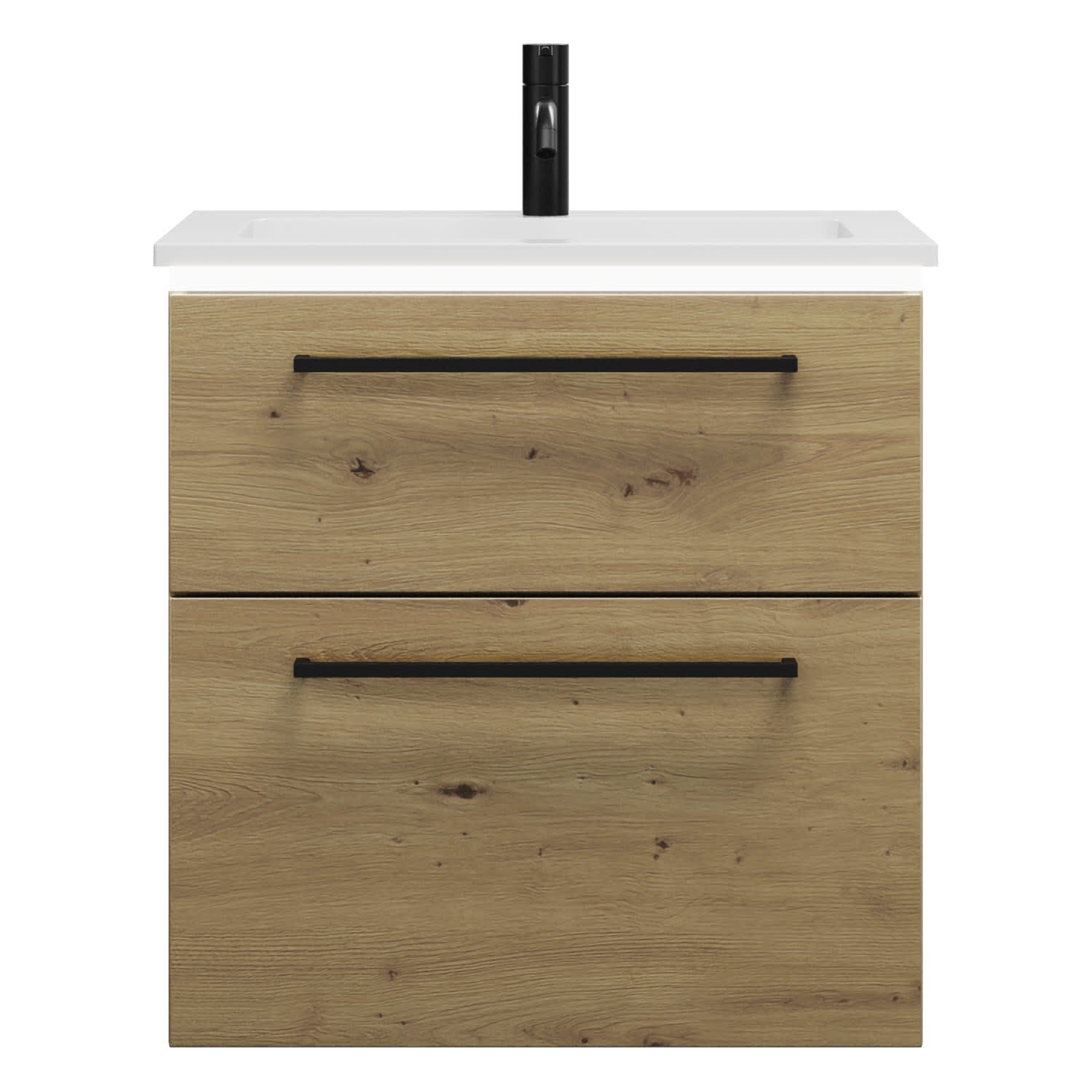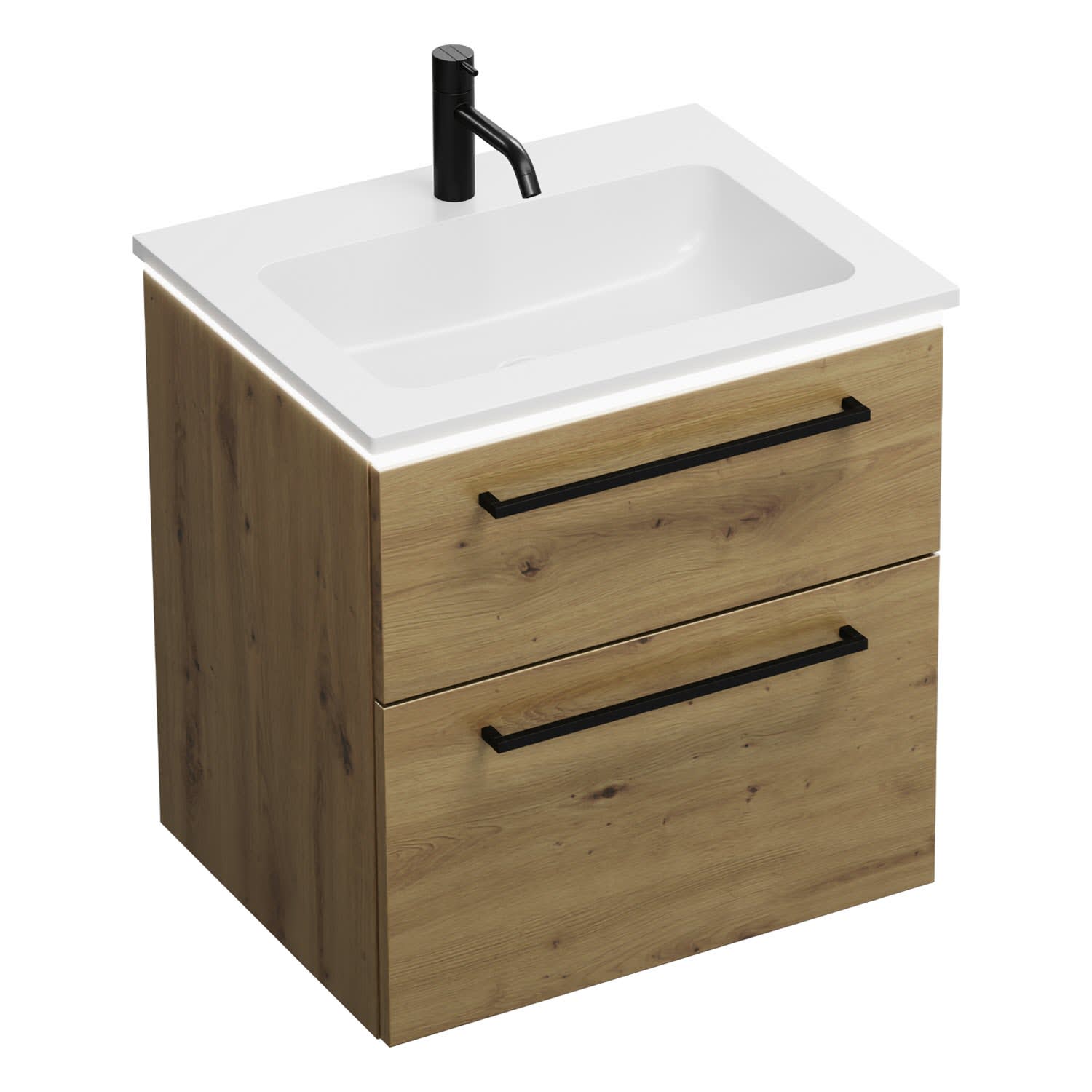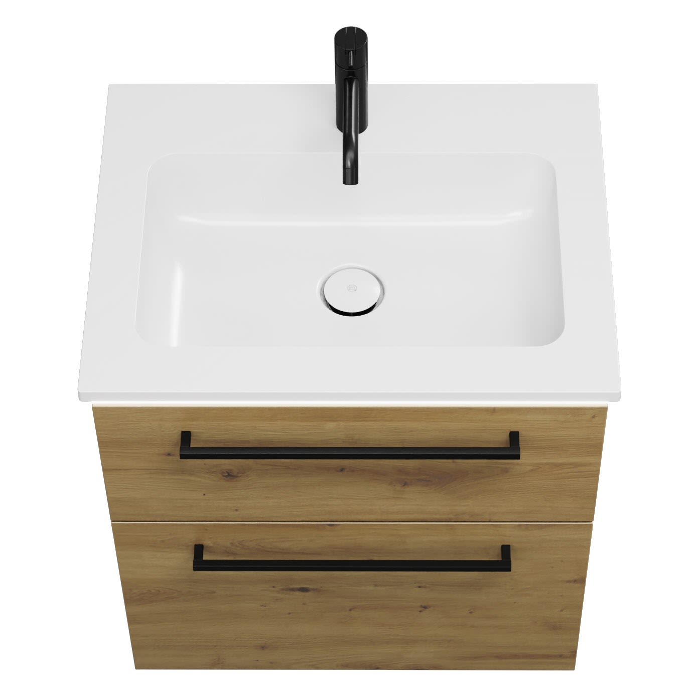 burgbad Eqio Waschtischkombination mit Mineralguss-Waschtisch und LED-Beleuchtung, 62 cm, mit Stangengriff G0234