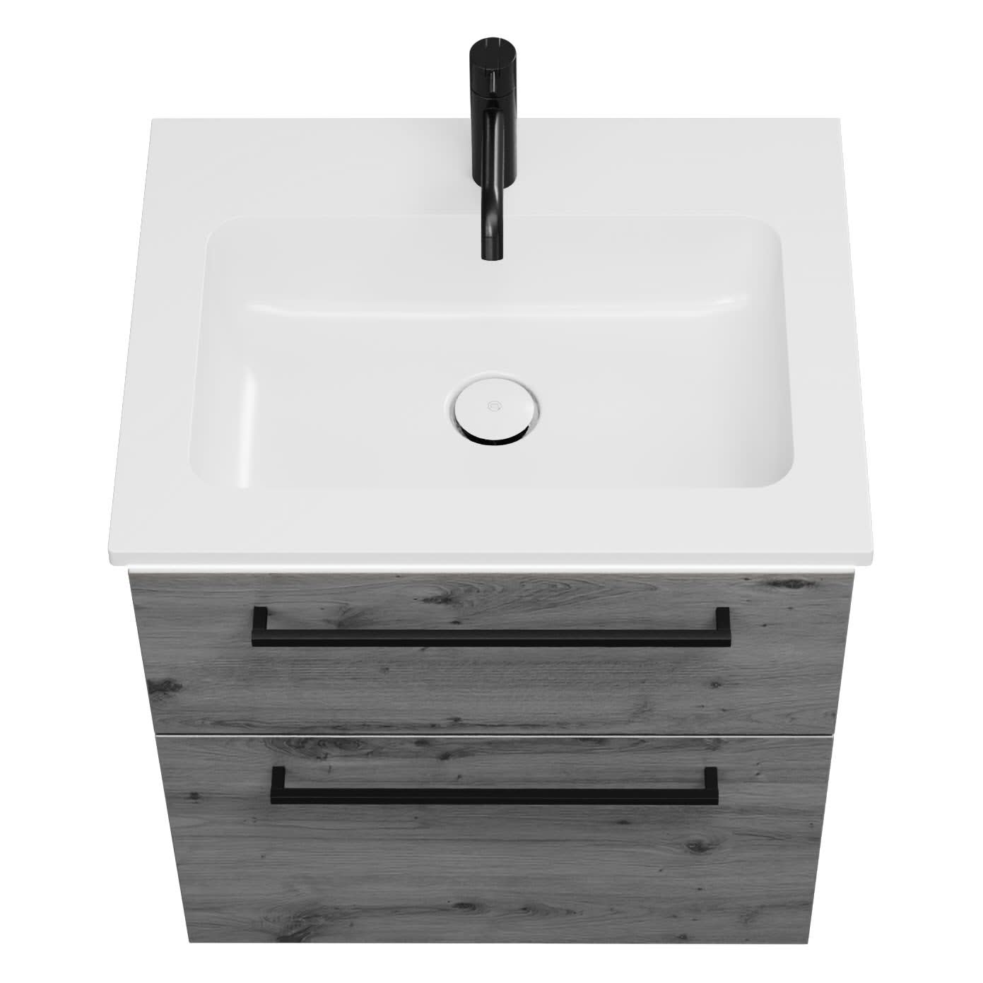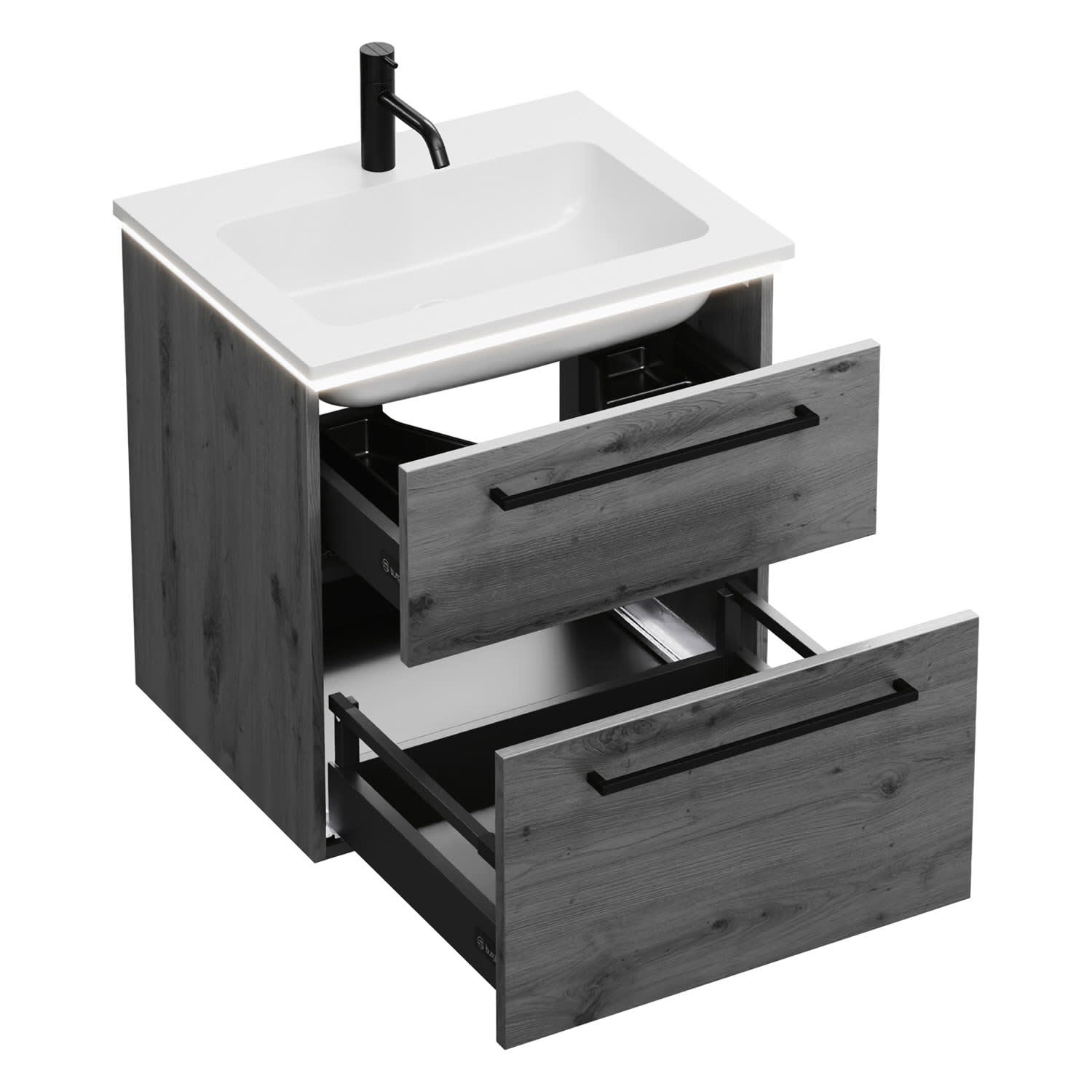 burgbad Eqio Waschtischkombination mit Mineralguss-Waschtisch und LED-Beleuchtung, 62 cm, mit Stangengriff G0234