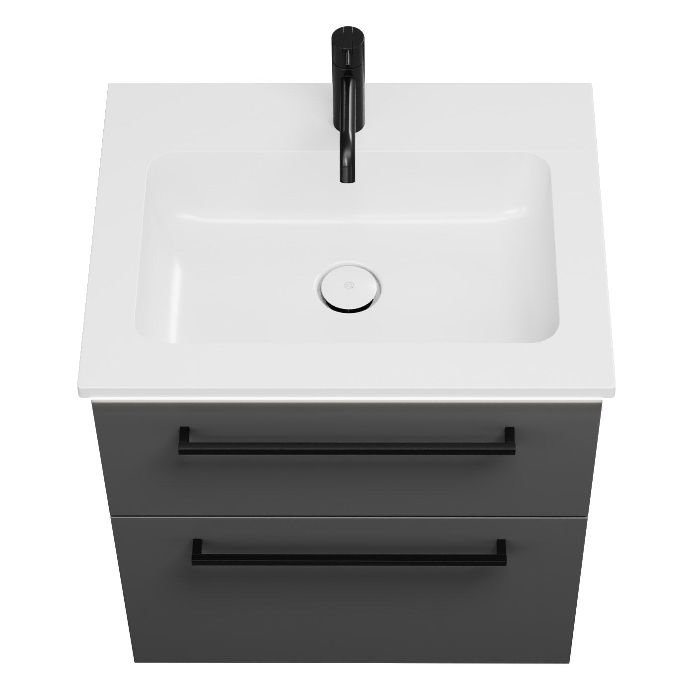 burgbad Eqio Waschtischkombination mit Mineralguss-Waschtisch und LED-Beleuchtung, 62 cm, mit Stangengriff G0234