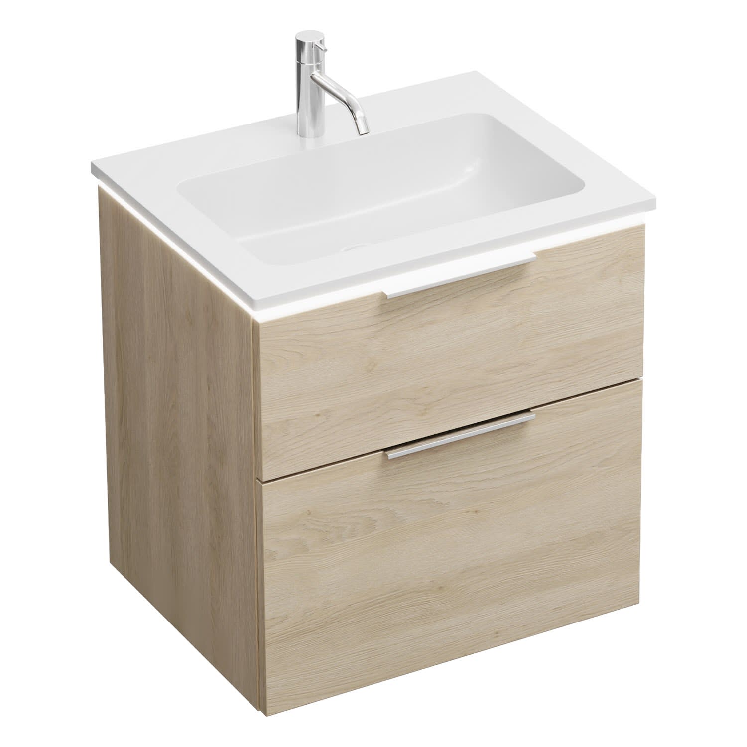 burgbad Eqio Waschtischkombination mit Mineralguss-Waschtisch und LED-Beleuchtung, 62 cm, mit Griff G0146