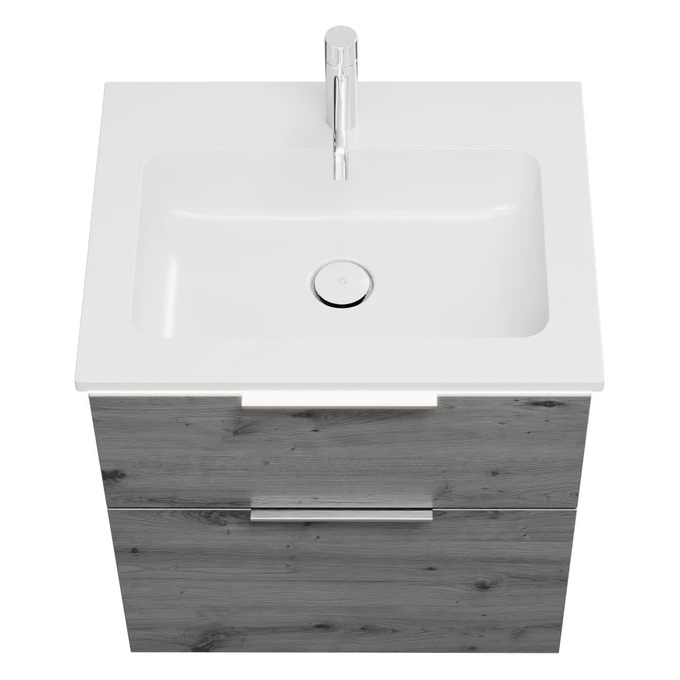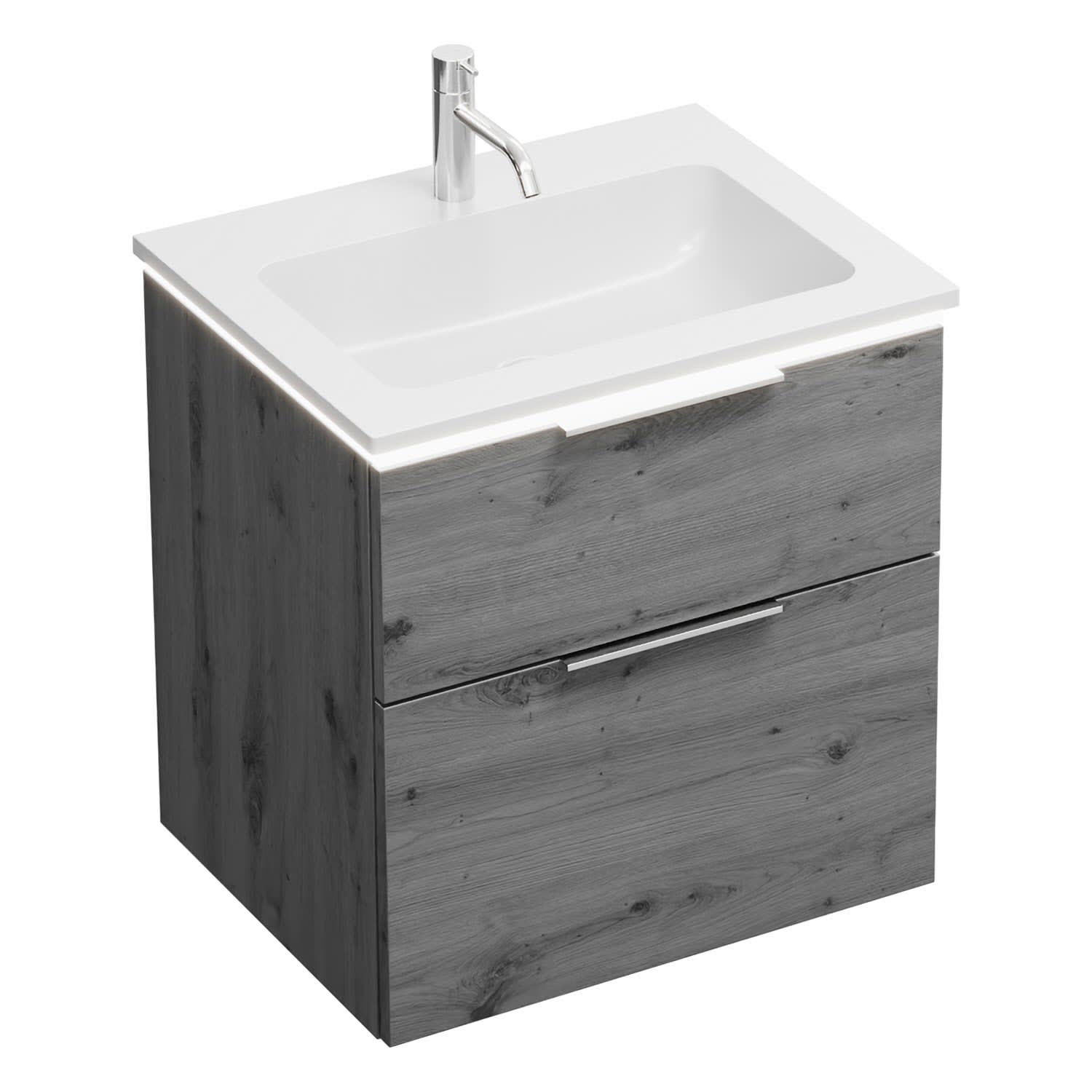 burgbad Eqio Waschtischkombination mit Mineralguss-Waschtisch und LED-Beleuchtung, 62 cm, mit Griff G0146