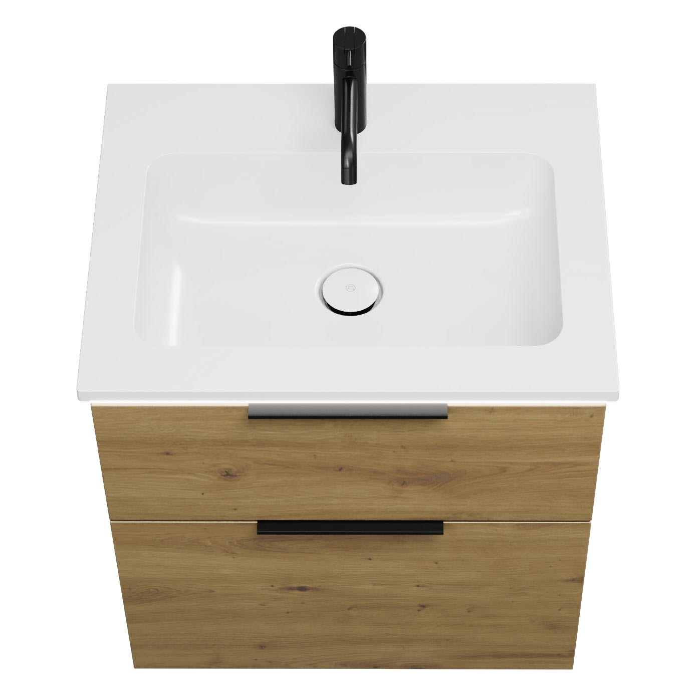 - 1 Schublade oben, 35 cm tief, mit Siphonausschnitt und Inneneinteilung