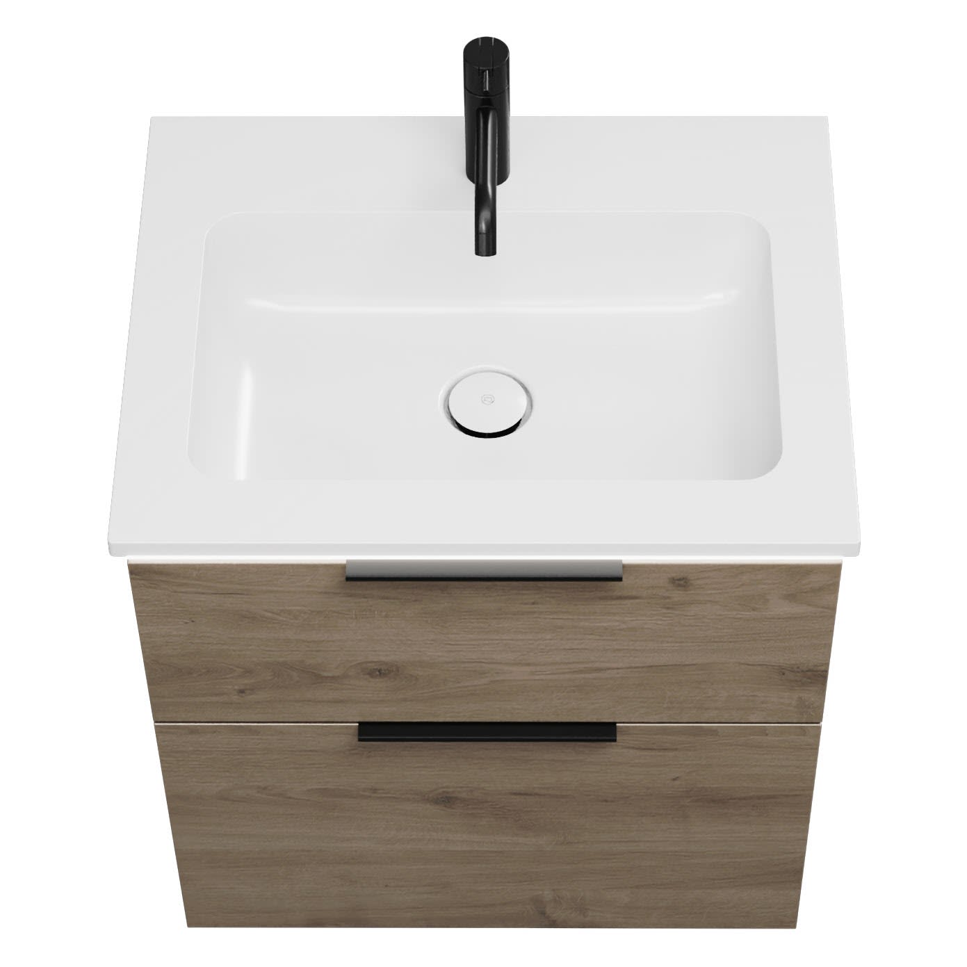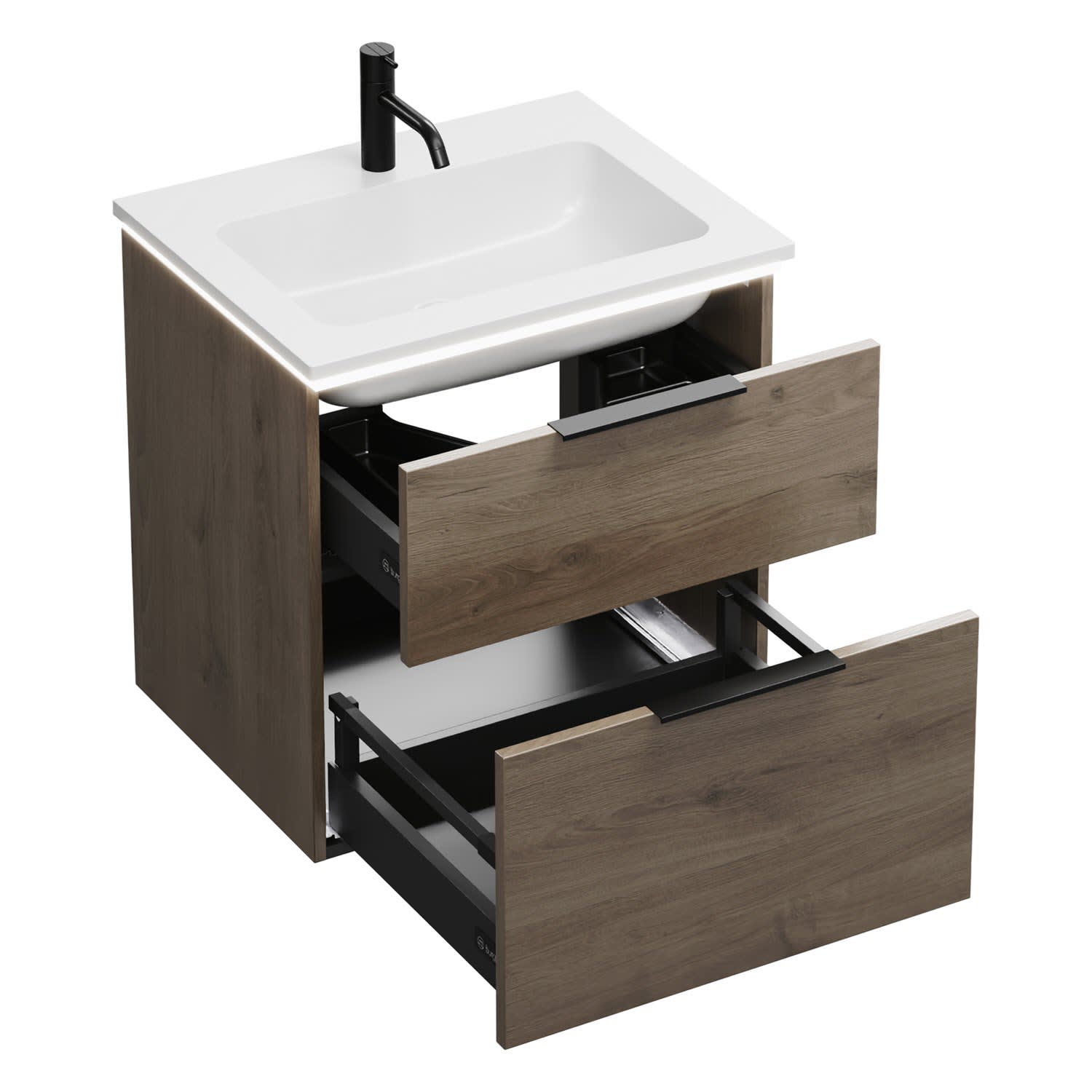- 1 Schublade oben, 35 cm tief, mit Siphonausschnitt und Inneneinteilung