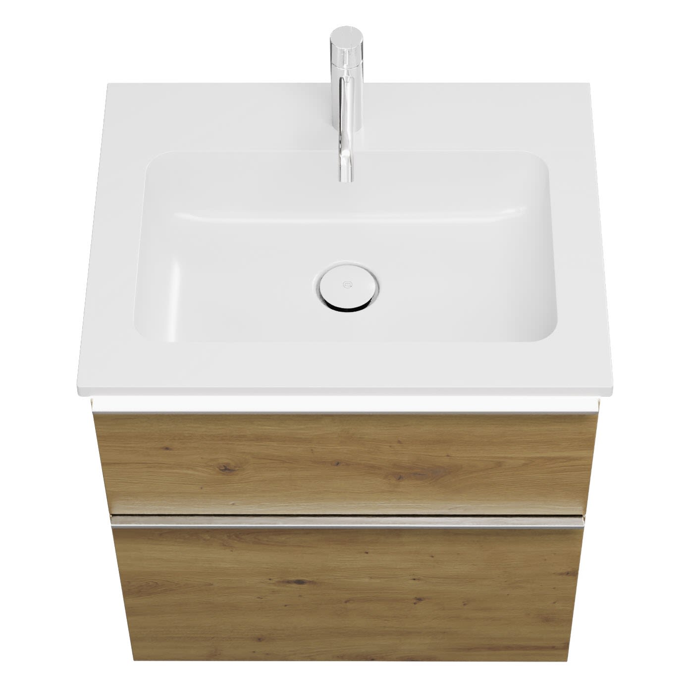 burgbad Eqio Waschtischkombination mit Mineralguss-Waschtisch und LED-Beleuchtung, 62 cm, mit Griffleiste G0251
