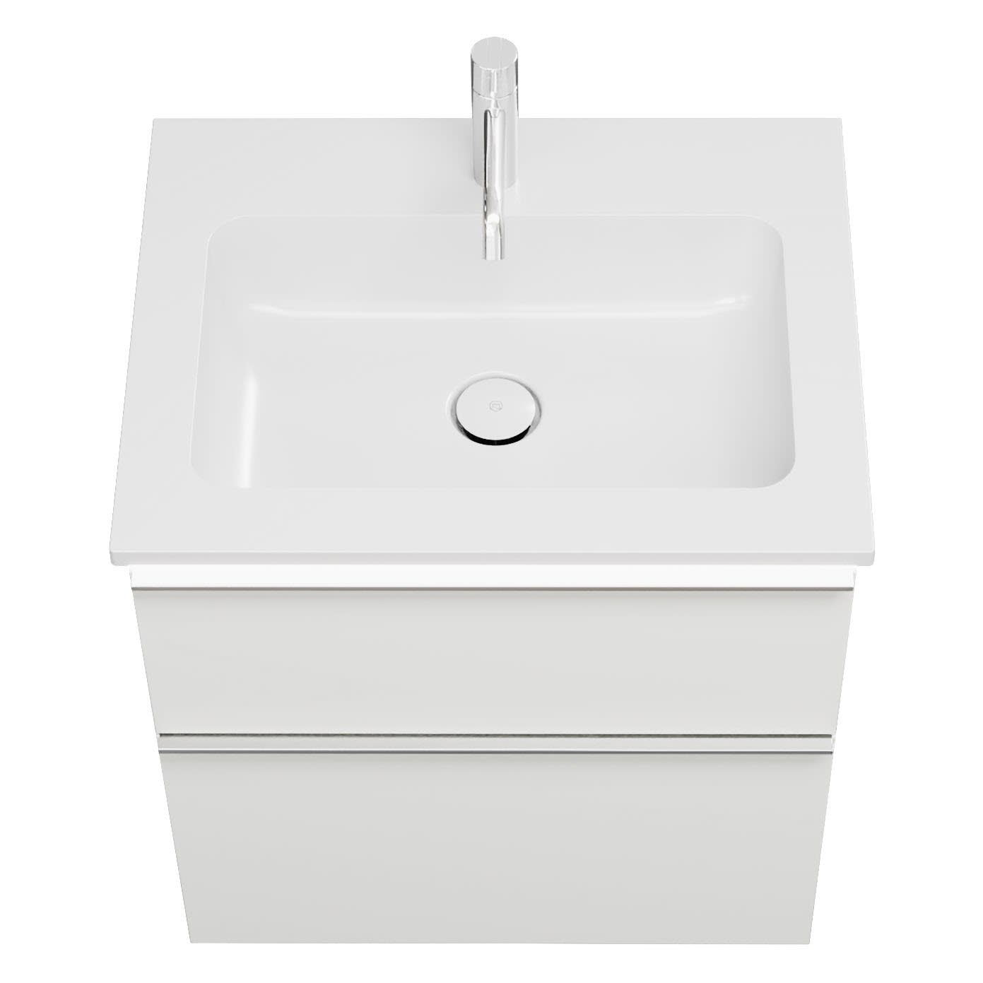 burgbad Eqio Waschtischkombination mit Mineralguss-Waschtisch und LED-Beleuchtung, 62 cm, mit Griffleiste G0251